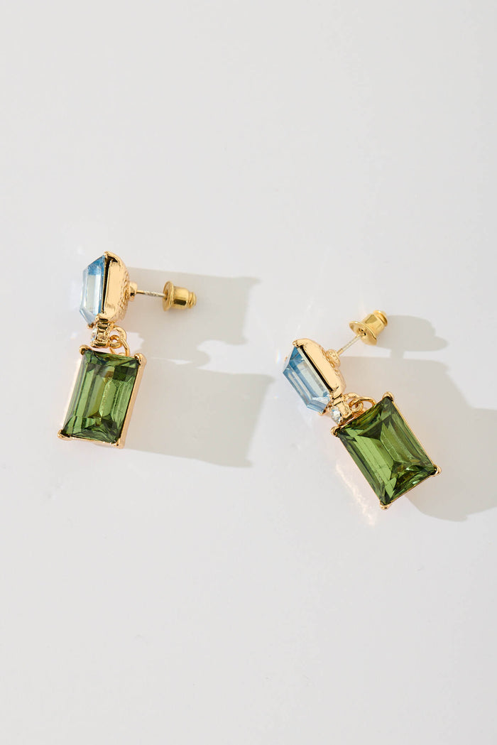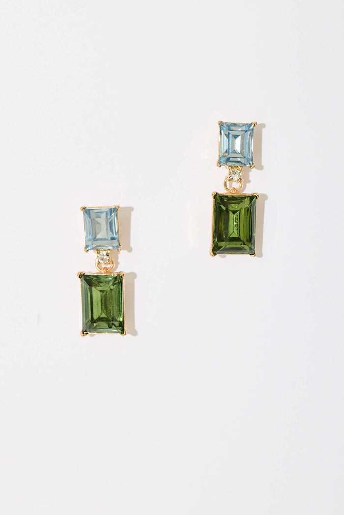 Selma Drop Earrings In Blue And Green Diamante