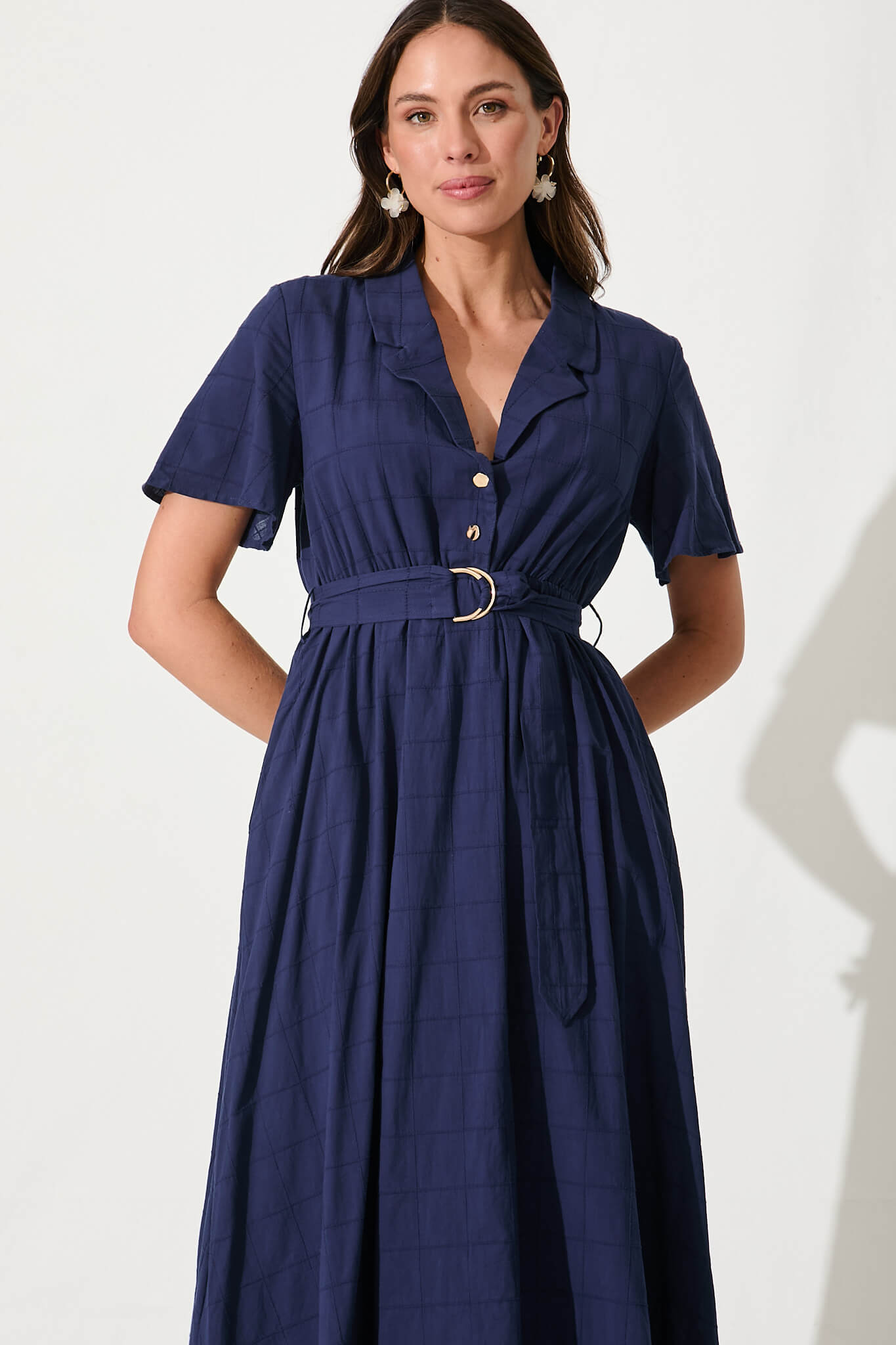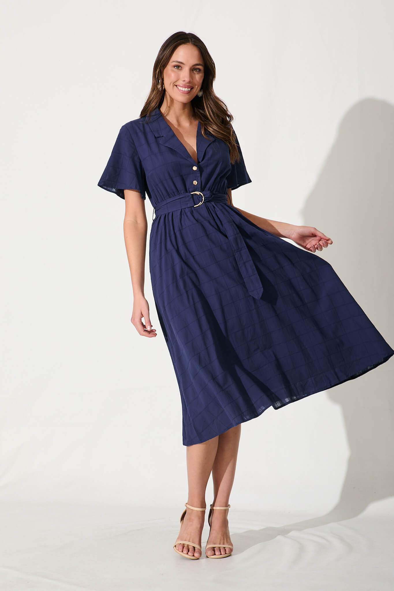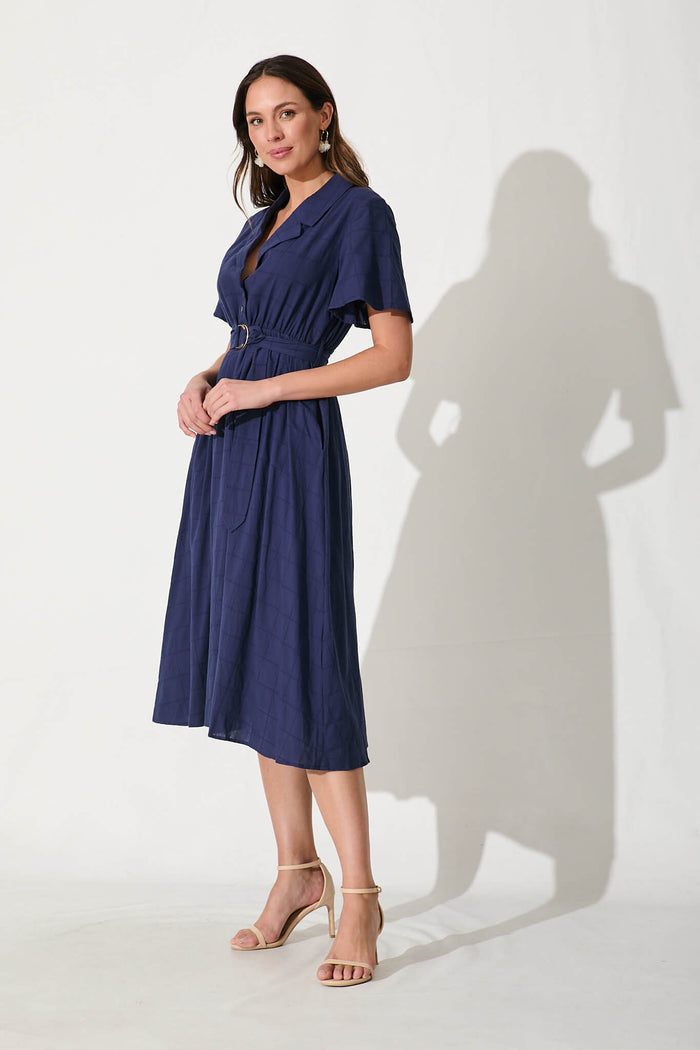 Seraphina Midi Dress In Navy Cotton