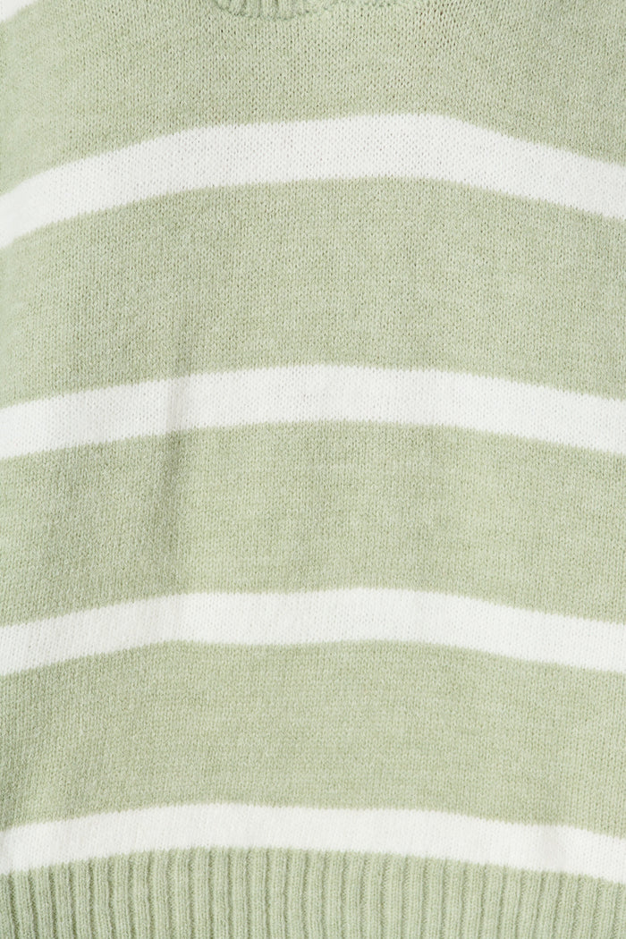 Serena Zip Knit in Sage with White Stripe Wool Blend