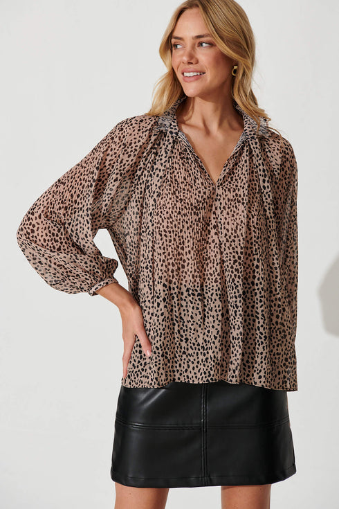 Shadia Top In Beige Leopard