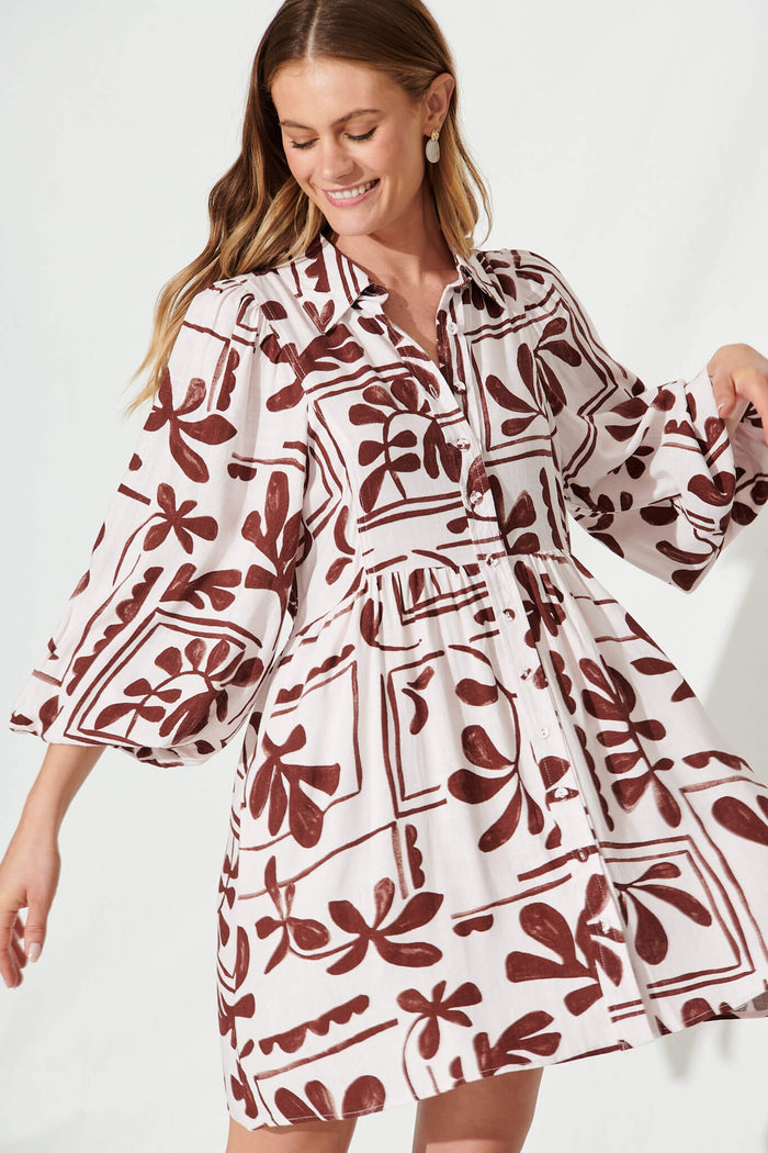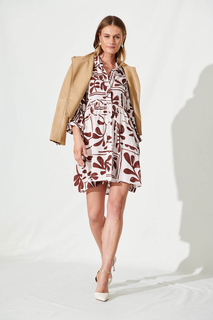 Shelby Shirt Smock Dress In Blush And Chocolate Linen Blend