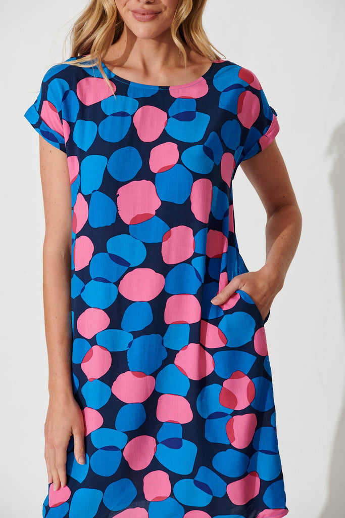 Sia Dress In Navy With Blue Spot