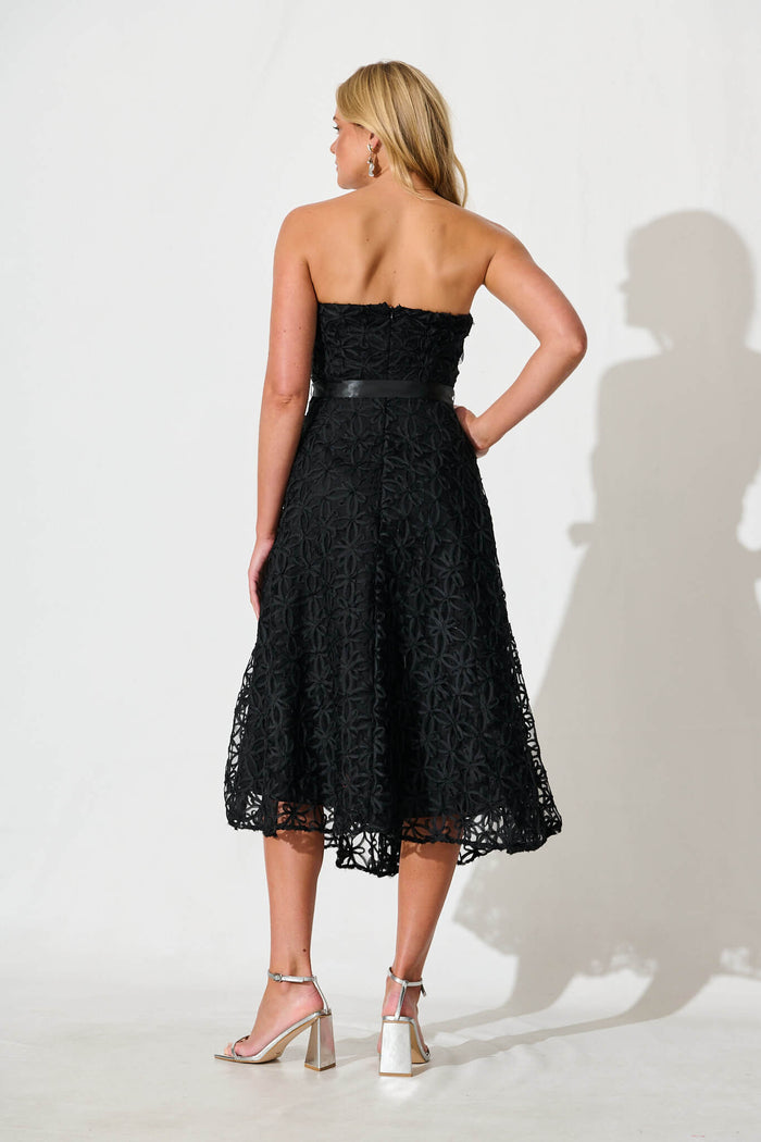 Sia Midi Dress in Black Floral Embroidered Tulle