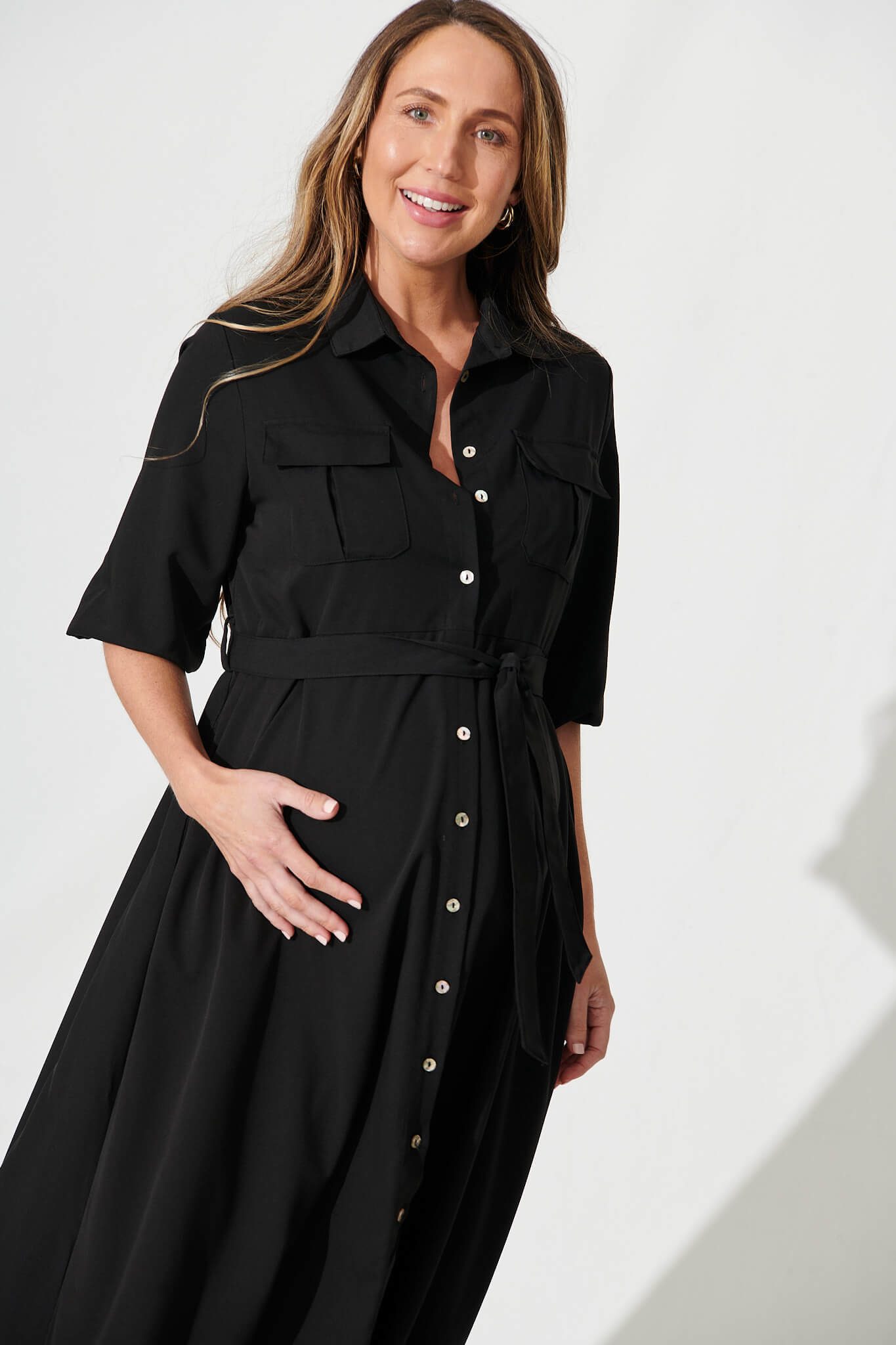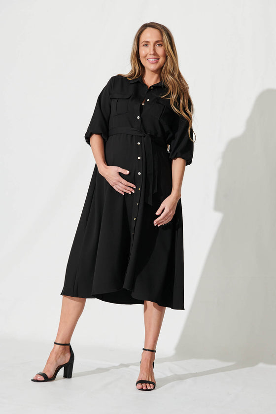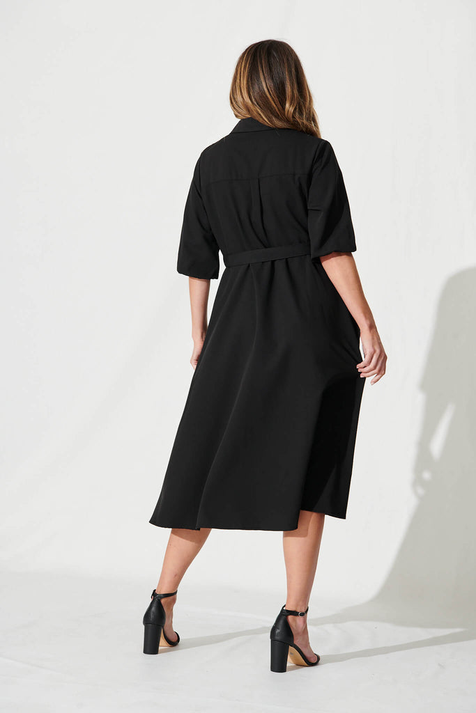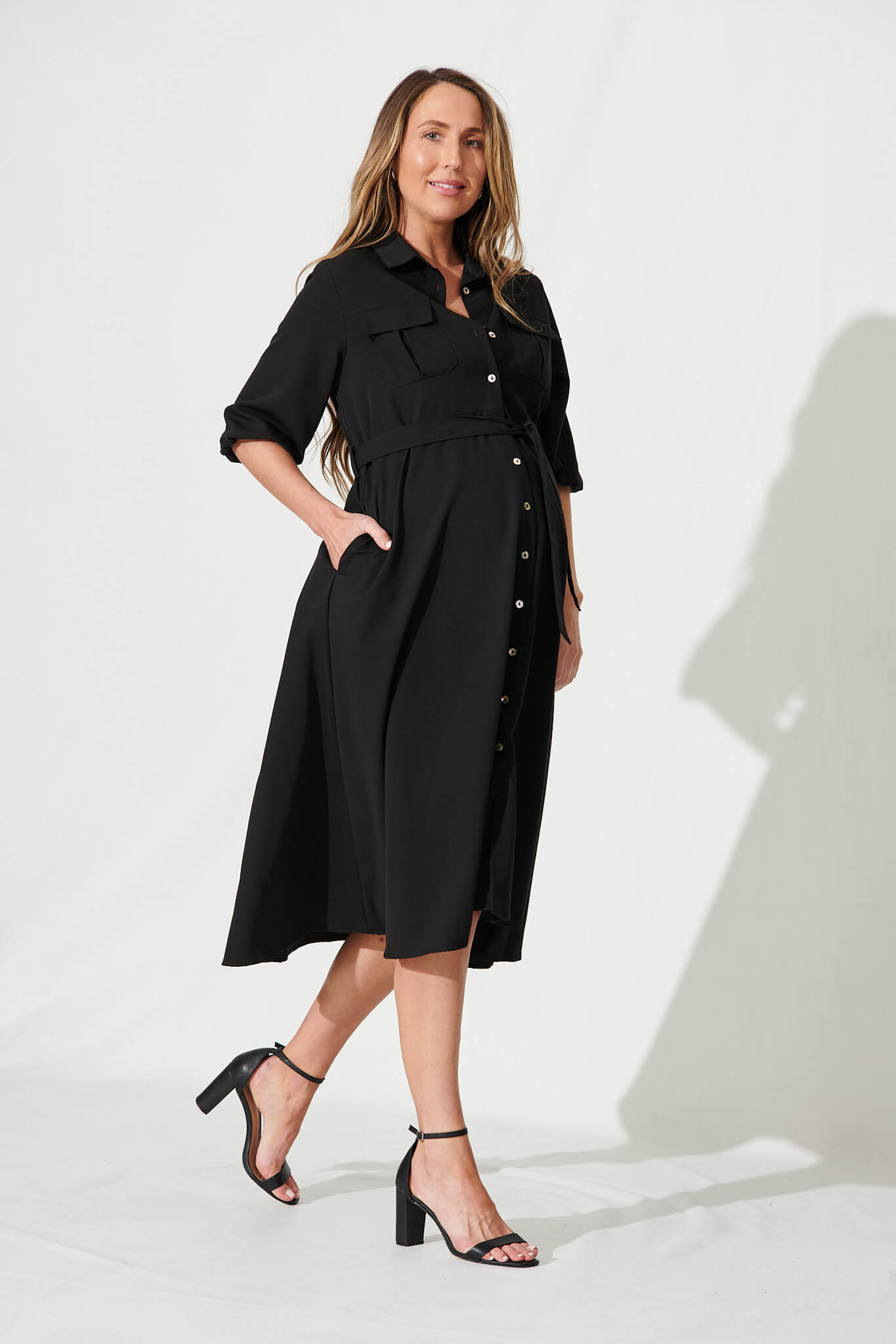 Sinatra Midi Shirt Dress In Black Cotton Blend