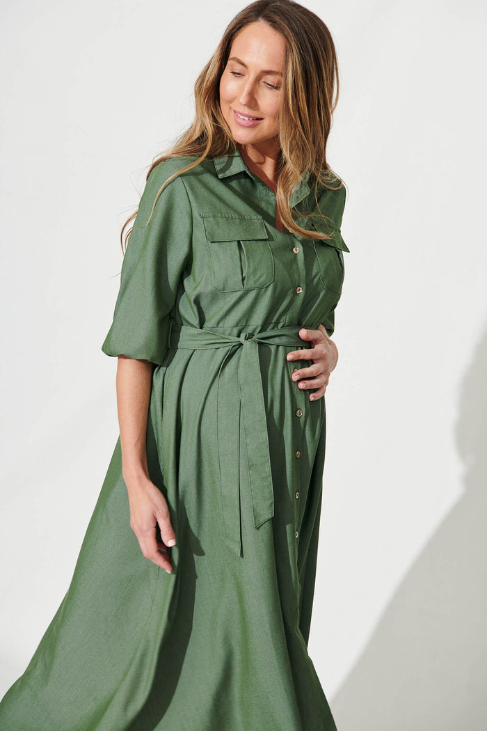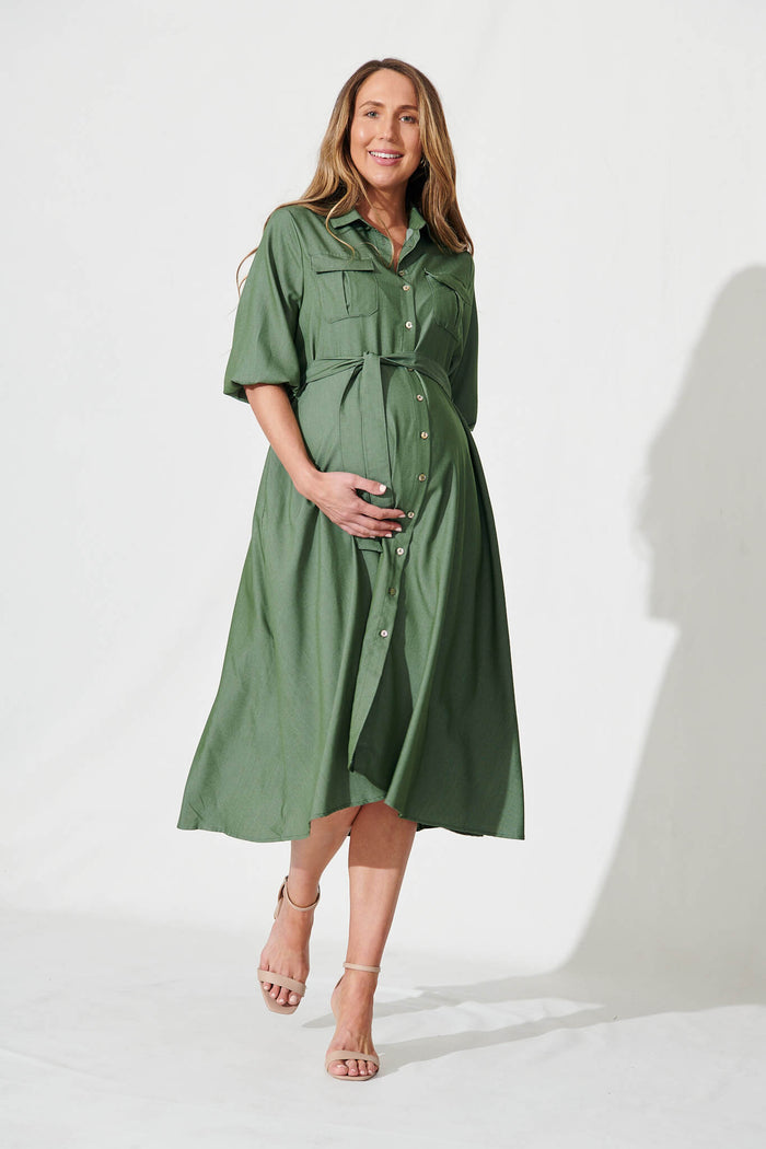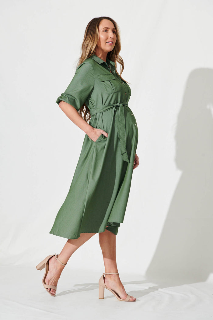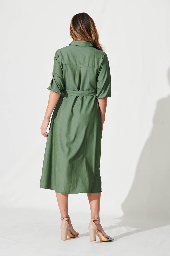 Sinatra Midi Shirt Dress In Emerald Cotton Blend