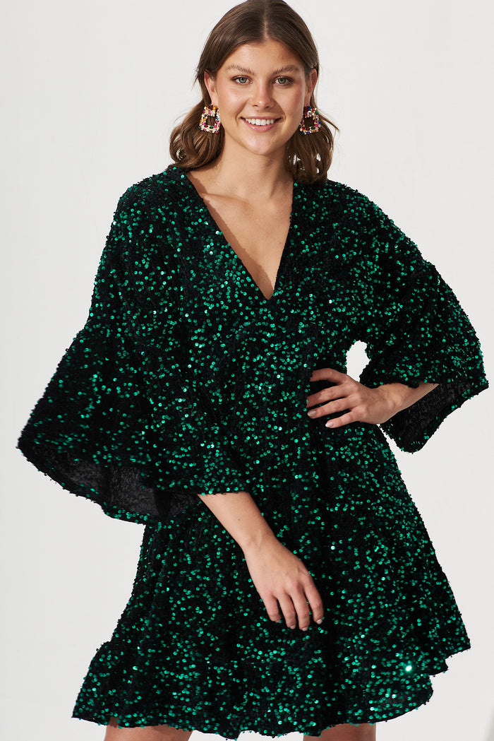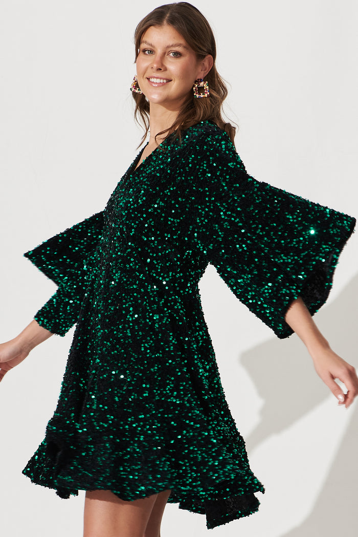 Skylark Sequin Dress In Emerald