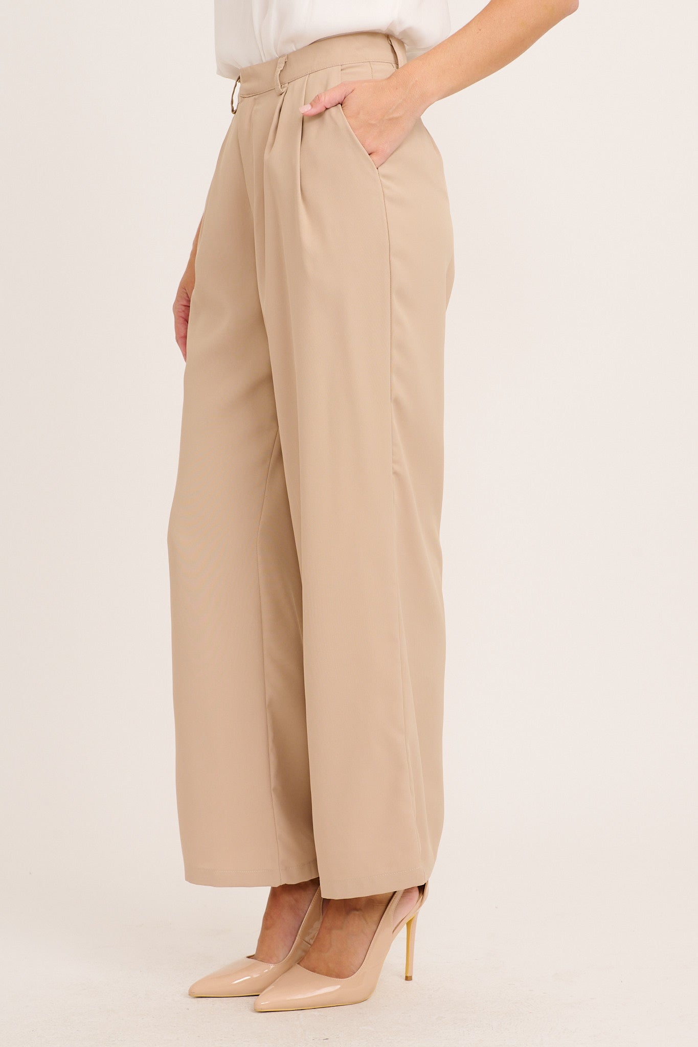 Crafted from midweight fabric with a smooth finish, the pants provide a structured feel while remaining comfortable for all day wear. The taupe tone creates a modern neutral base that pairs seamlessly with blazers, blouses and knitwear.