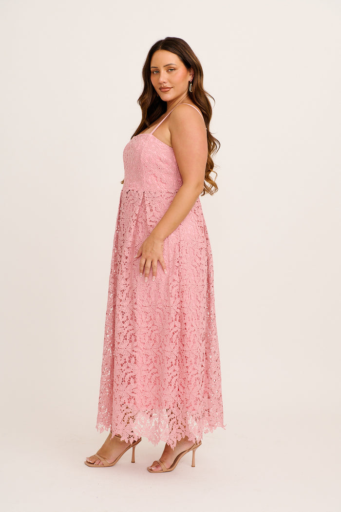 Turn every moment into a special occasion with the Something Special Maxi Lace Dress in Blush. Soft, sweeping and timeless, this piece is designed for life's most memorable events — think weddings, celebrations, and all those elegant evenings where you want to feel effortlessly beautiful.