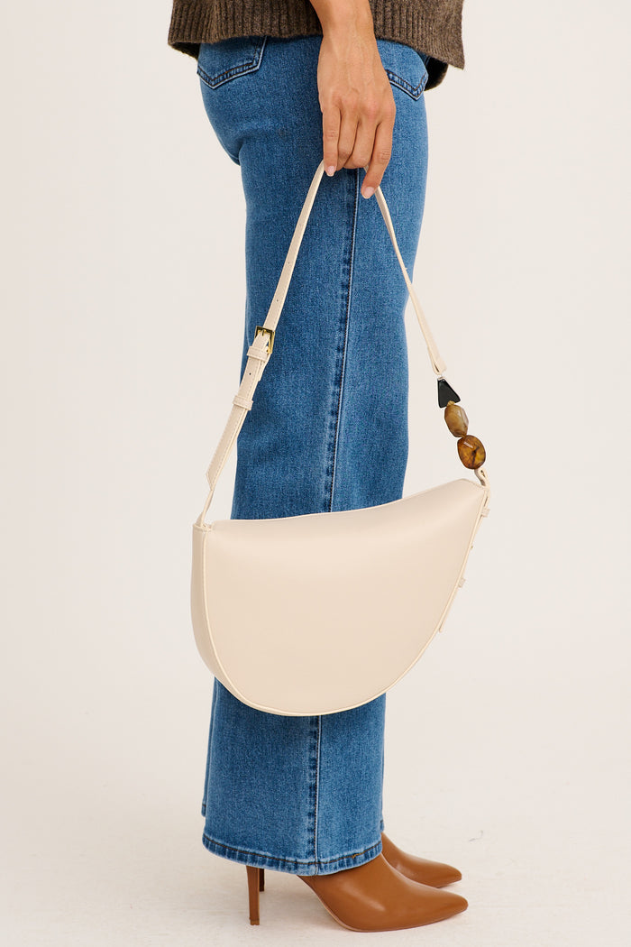 The Sophie Shoulder Bag in Cream with Resin Beads is a chic statement accessory designed to elevate your everyday styling. Featuring a soft cream finish with eye-catching resin bead detailing, this bag blends modern texture with effortless sophistication.