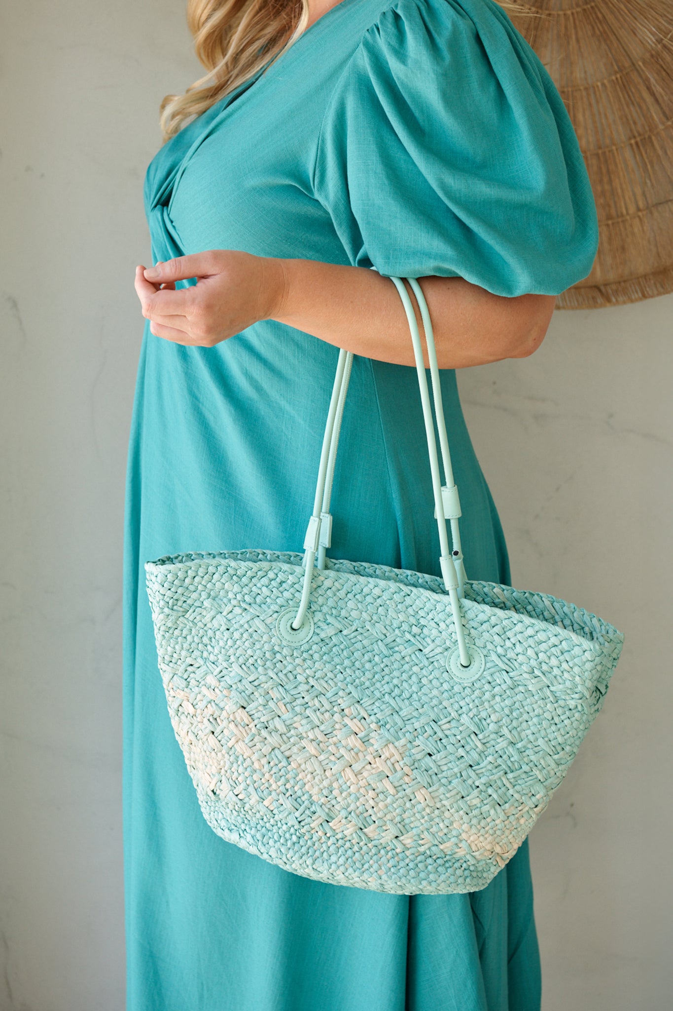 Sorrento Tote Bag in Aqua and Beige Raffia