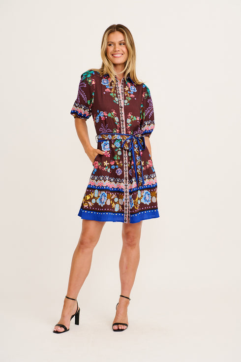 Spirit Shirt Dress in Chocolate Multi Floral Print Linen Blend