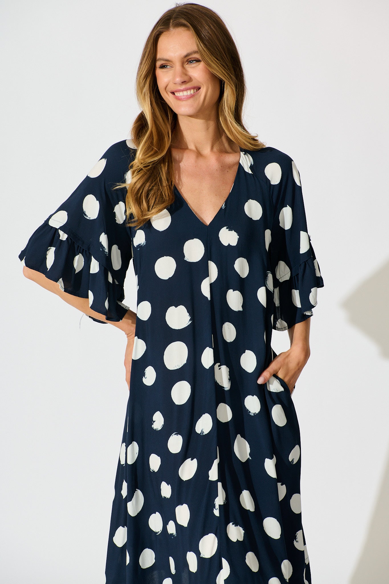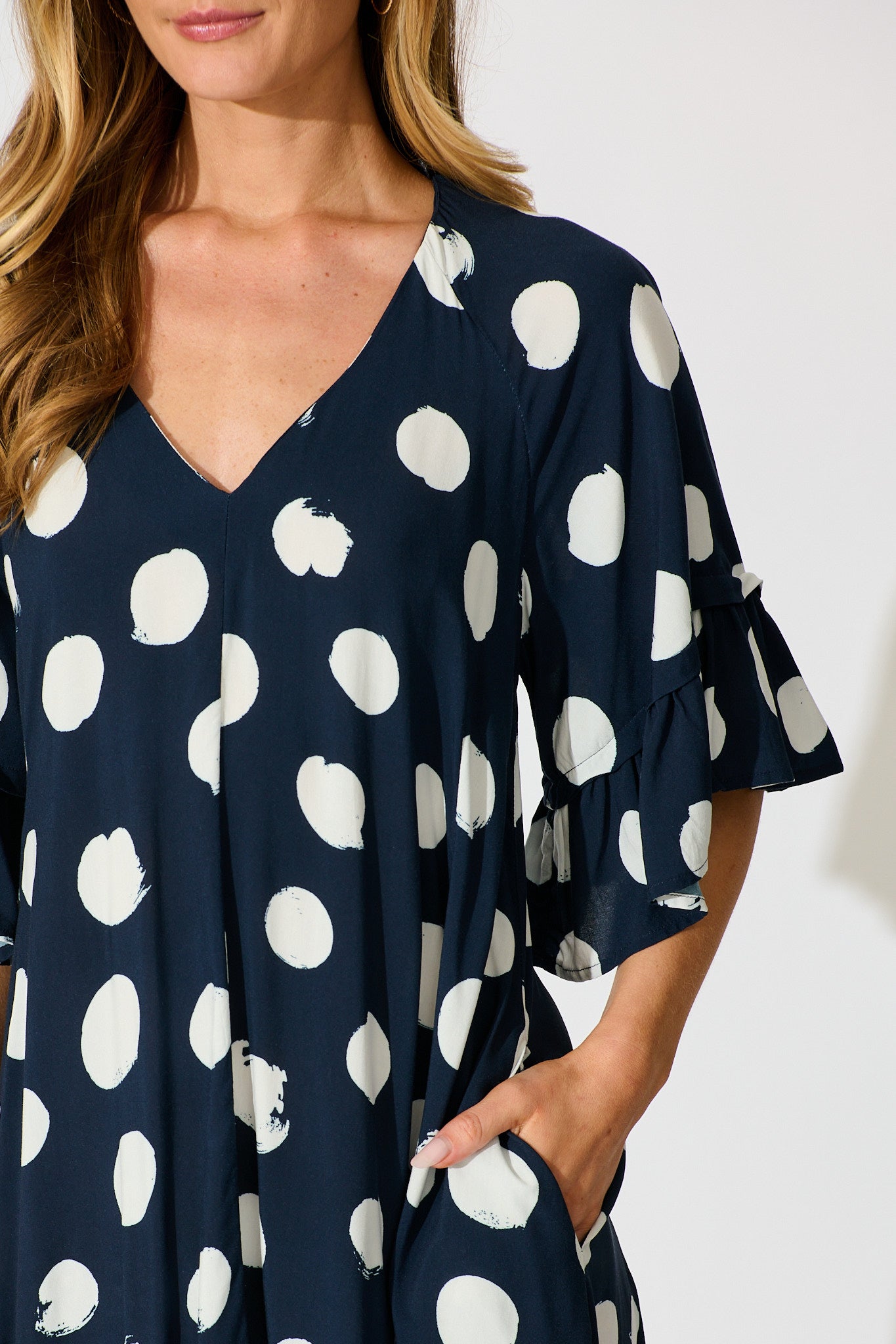 Light, breezy and effortlessly polished – the Spot On Dress in Navy with White Spot is the ultimate everyday statement piece. Perfect for those who love their wardrobe with a touch of playfulness, this relaxed-fit smock dress pairs beautifully with white sneakers or tan flats for off-duty days with a twist.