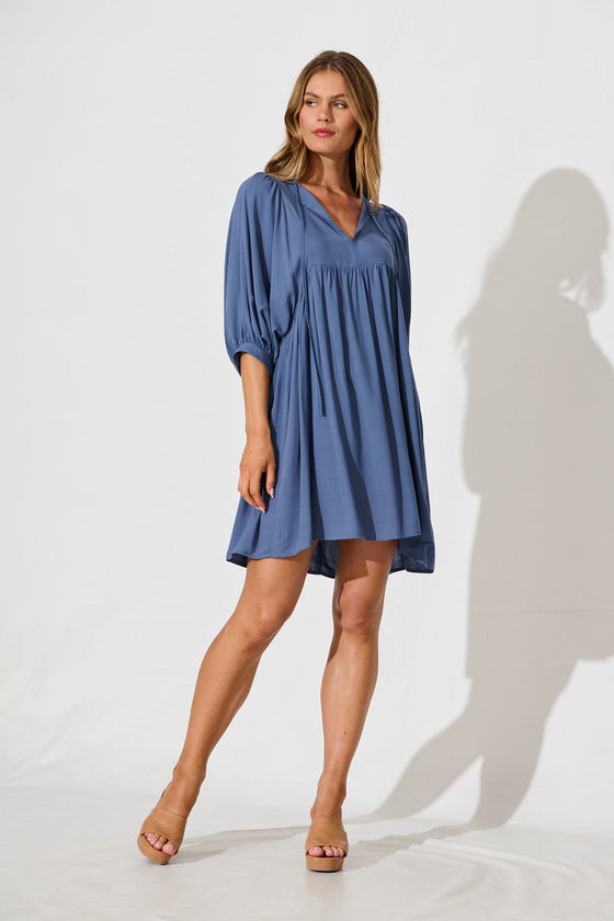 Spring Afternoon Midi Smock Dress In Dusty Blue