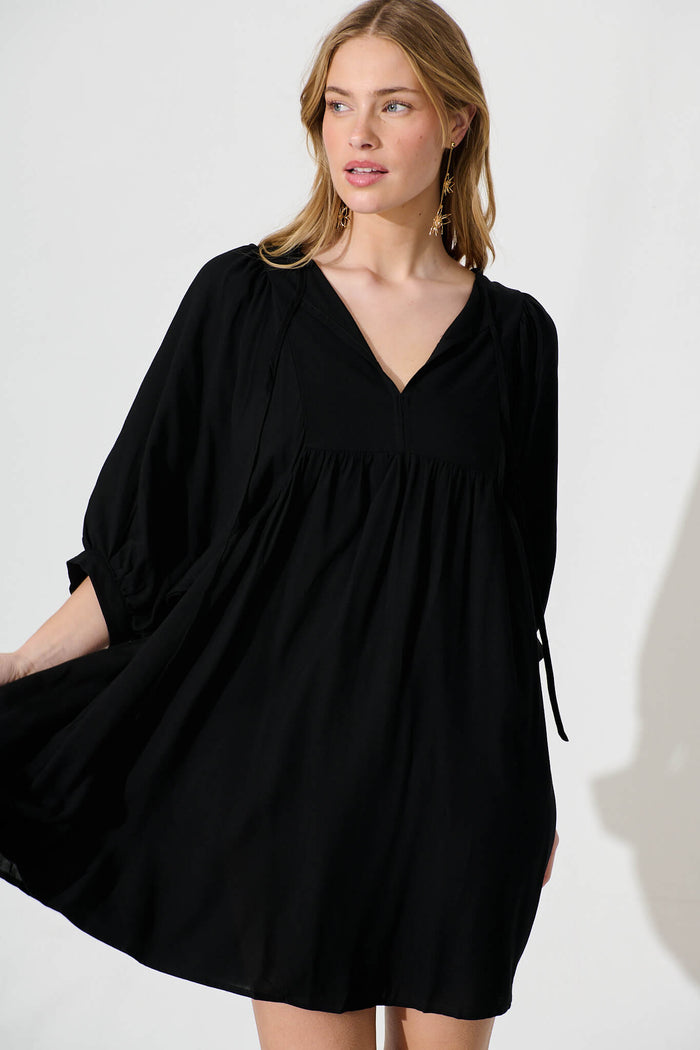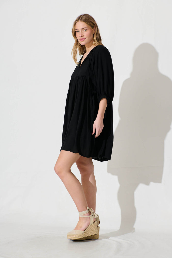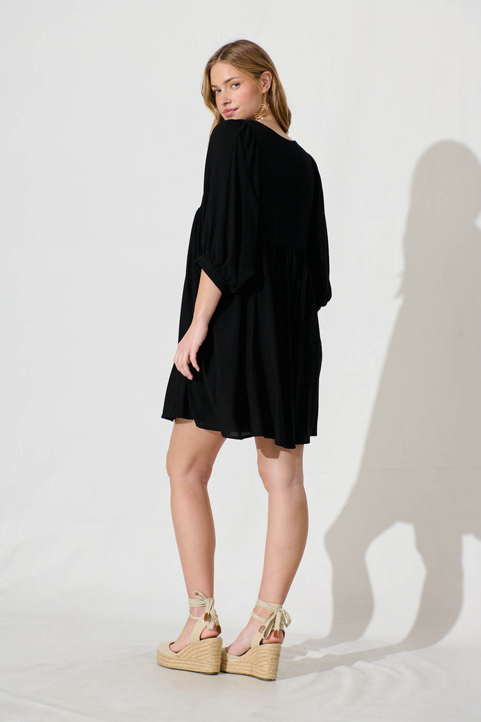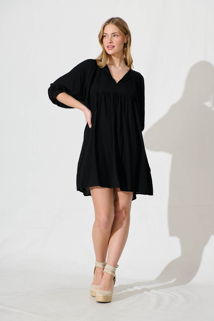 Spring Morning Smock Dress In Black