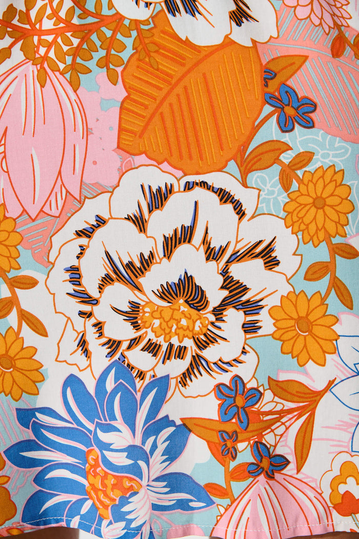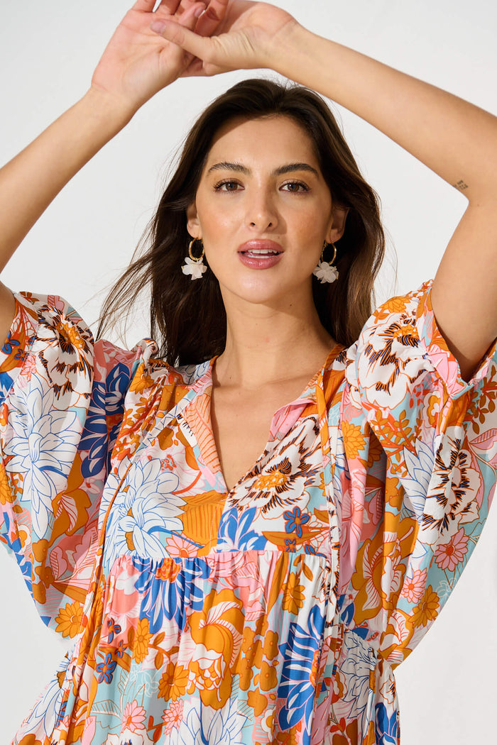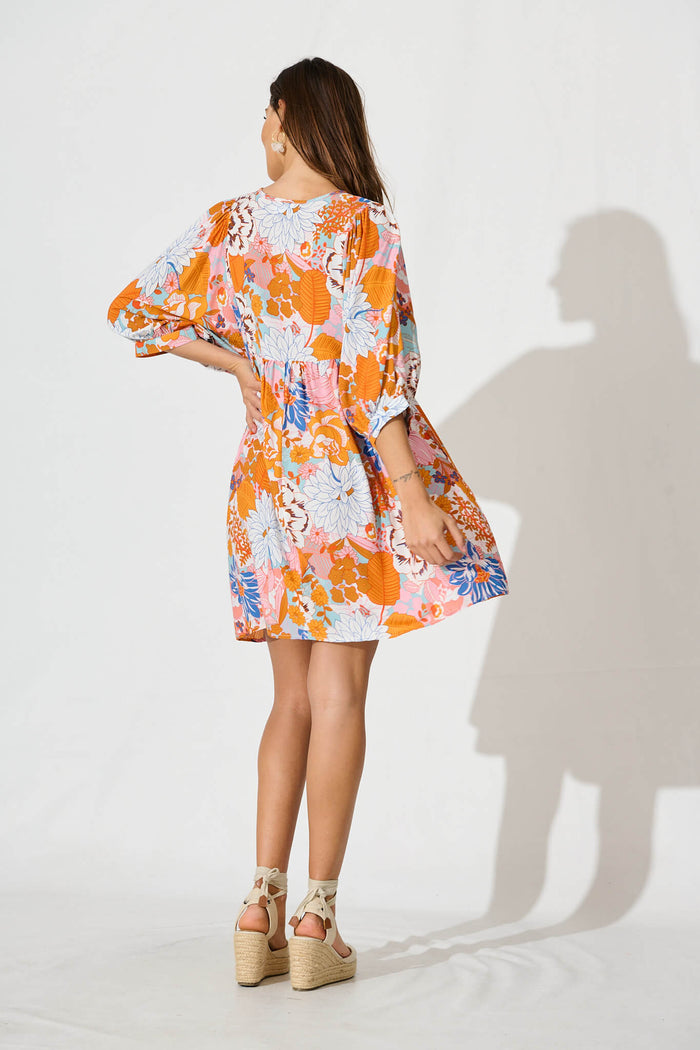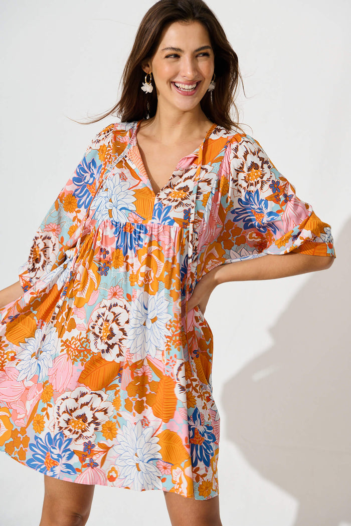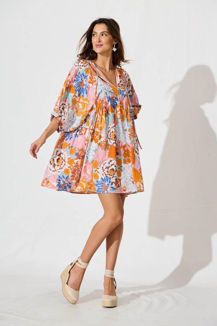 Spring Morning Smock Dress In Orange Multi Floral