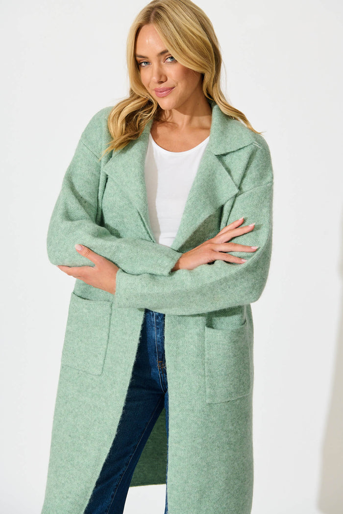 St Ives Coatigan in Green Wool Blend