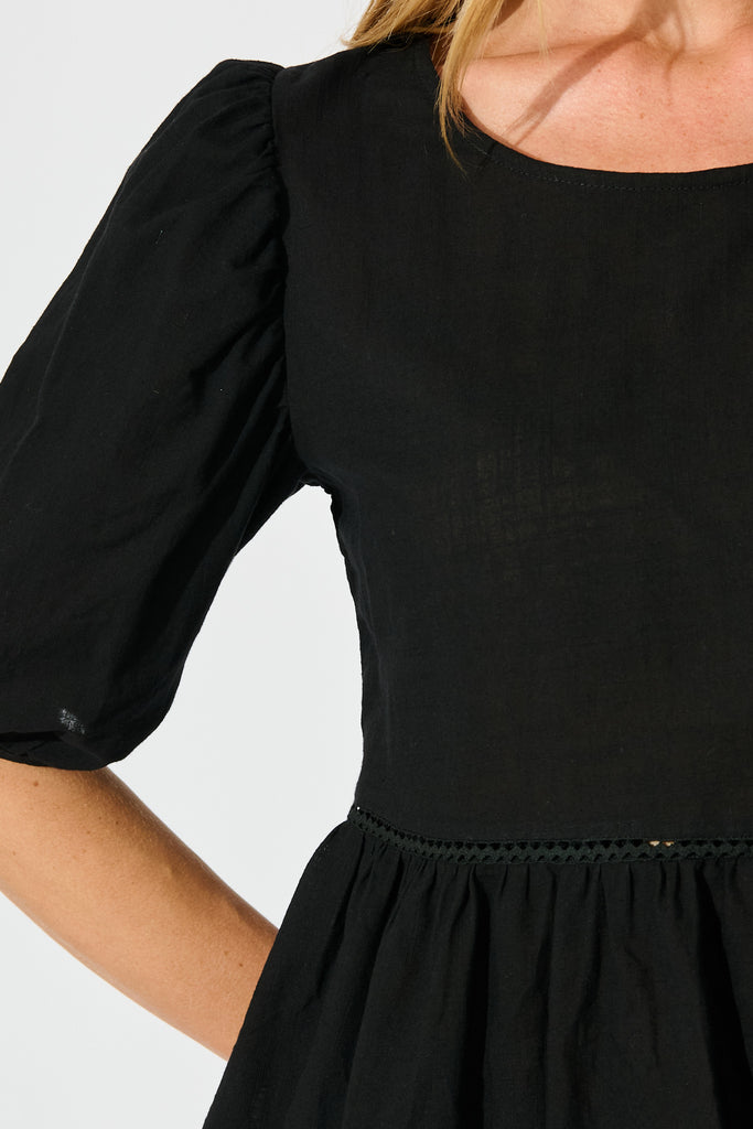 Effortless sophistication meets subtle detail in the Stacy Top in Black Cotton Linen Perfect for everyday office wear, weekend outings or relaxed dinners, its understated elegance makes it a versatile staple.