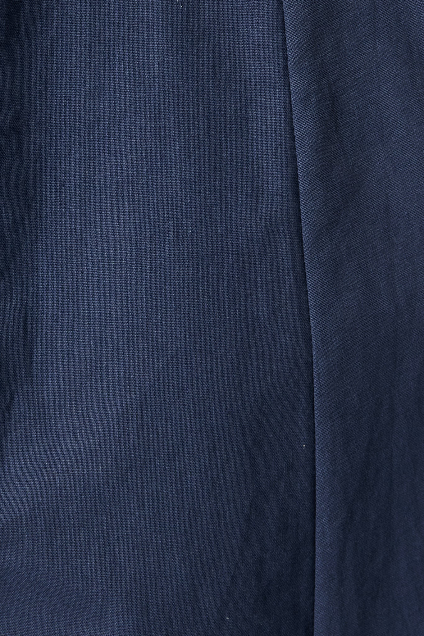 A self-fabric belt punctuated by gold-tone buttons refines the silhouette, while its navy tone offers timeless versatility for both workday polish and off-duty elegance.