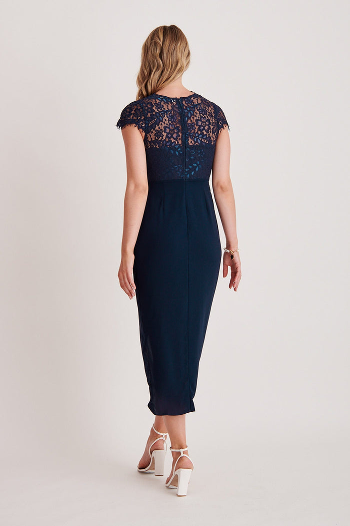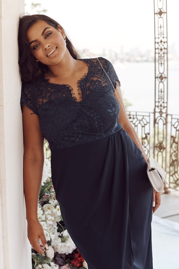 Introducing the Stella Lace Dress in Navy! Soft edges and lace details make this piece delicate but daring. Pair yours with beautiful drop earrings and nude heels!