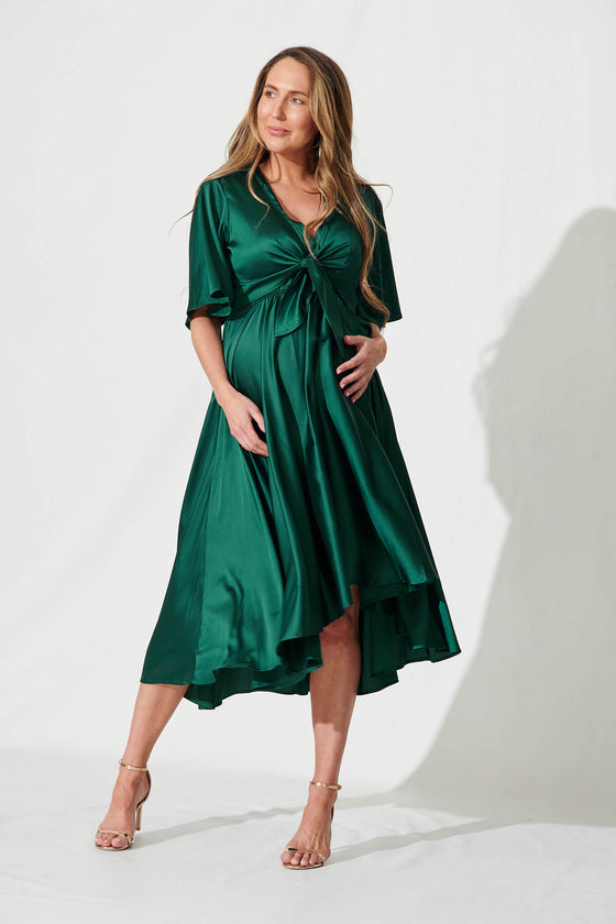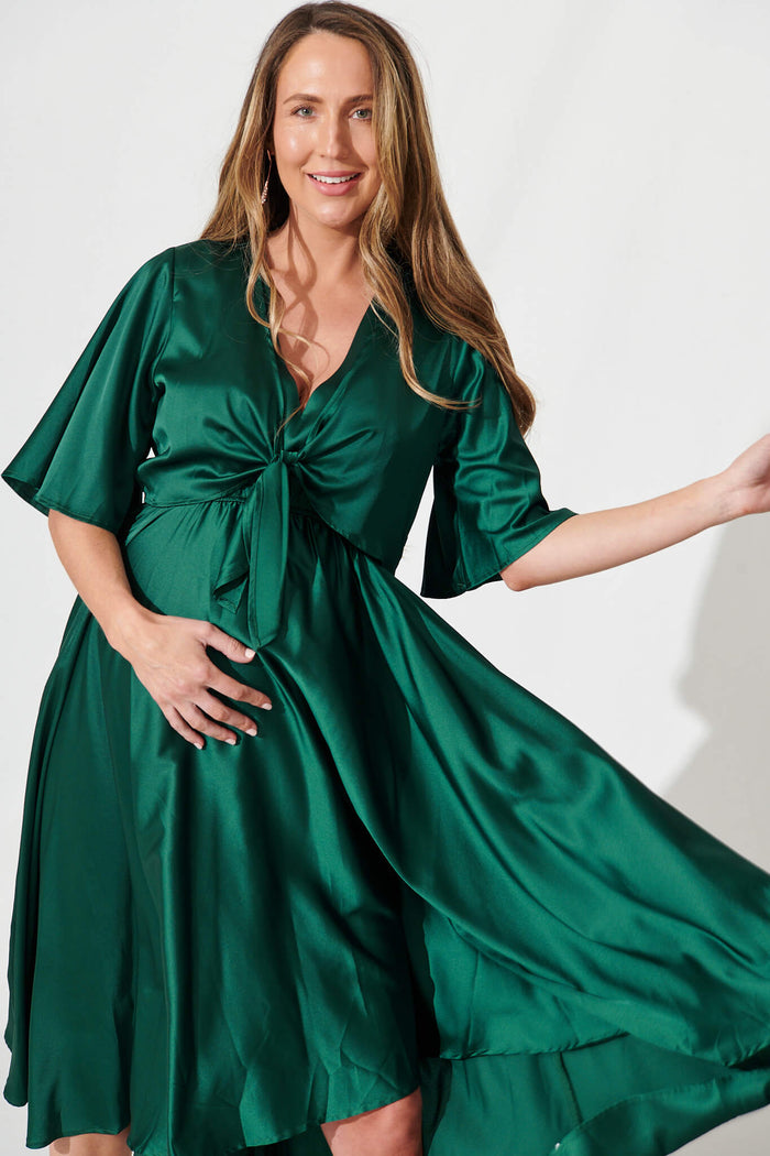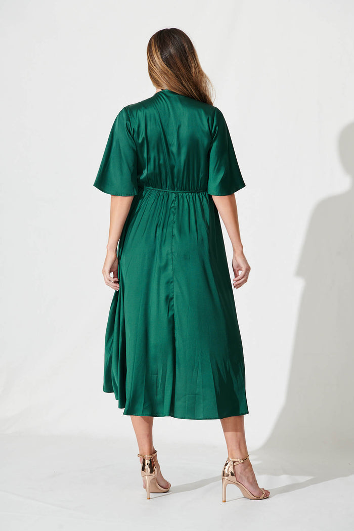 Stockholm Dress In Emerald Green Satin