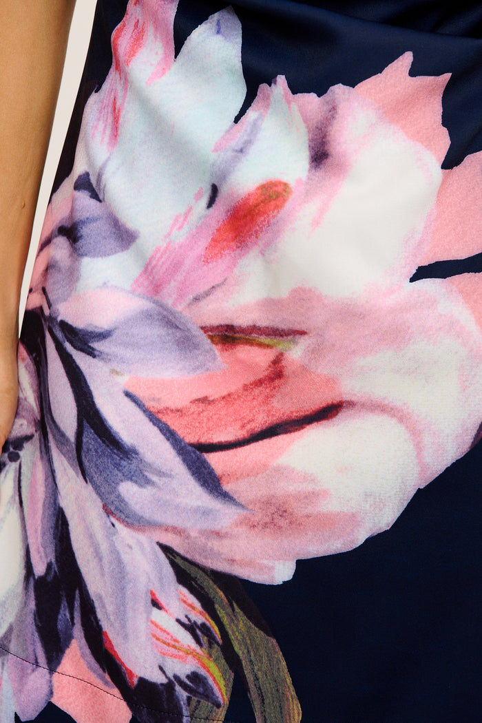 Featuring a classic round neckline and vibrant floral print, this dress was made for evenings that call for a refined yet playful statement. Unlined for lightness, it's an ideal pick for summer parties or cocktails under the stars.