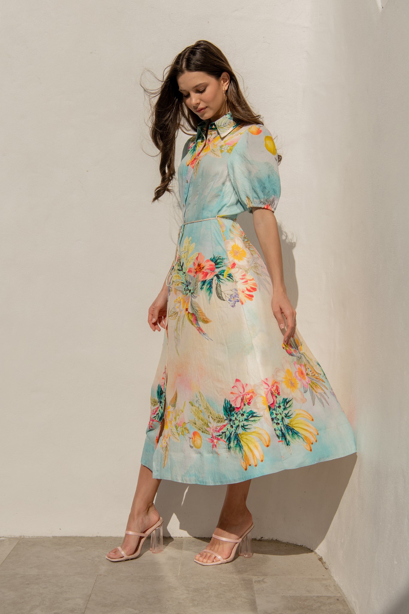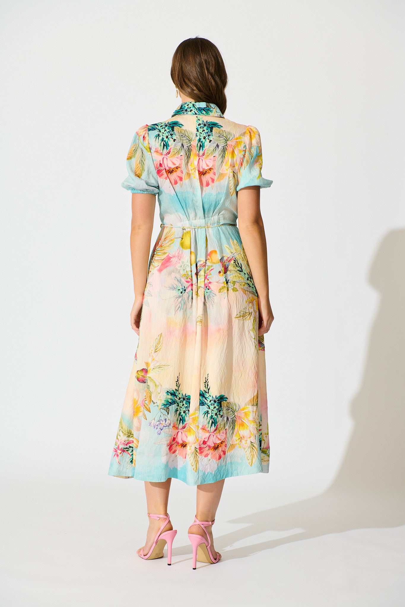 Sundrop Midi Shirt Dress in Multi Tropical Floral Print