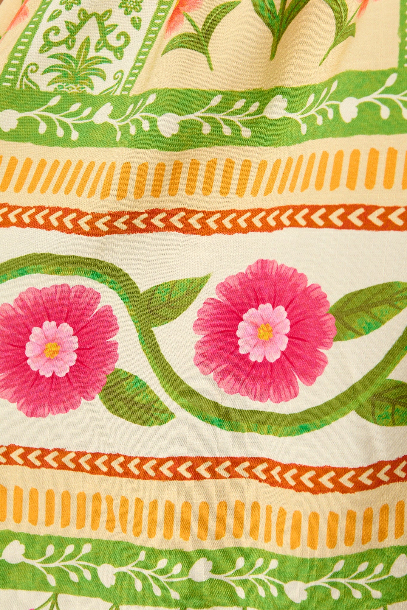 Brighten up your weekend wardrobe with the Sunset Squeeze Playsuit in Pineapple Print. This fun, fresh playsuit is made for warm weather getaways, laid-back lunches, and afternoons in the sun. The lightweight, breathable Rayon ensures you stay cool, while the playful pineapple print instantly lifts your mood.