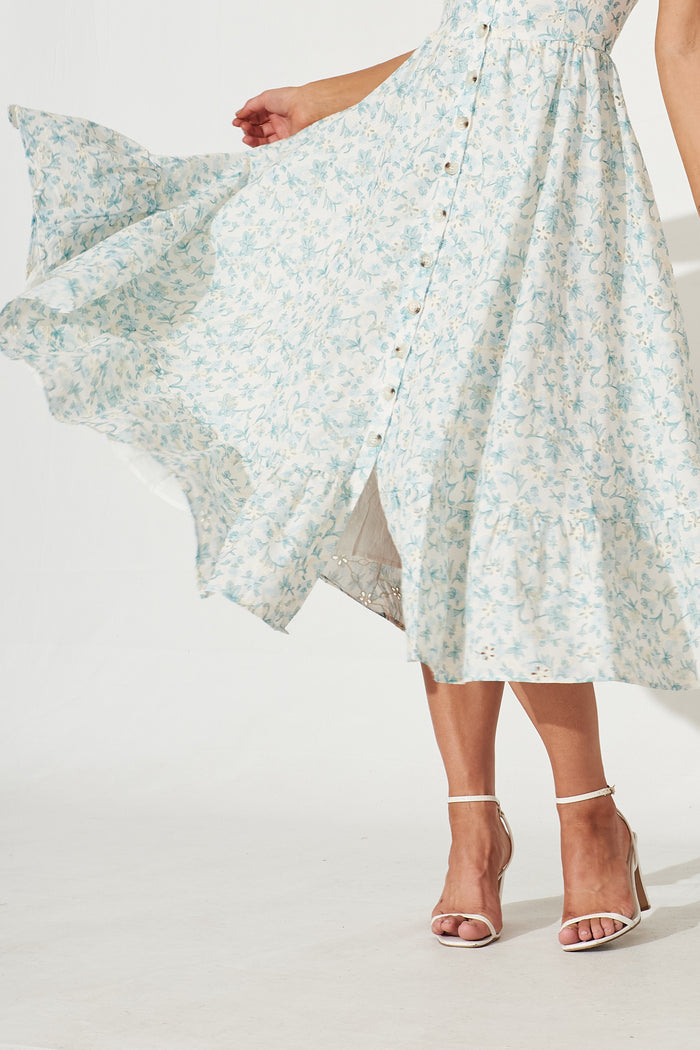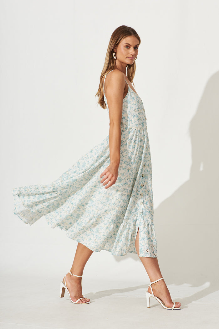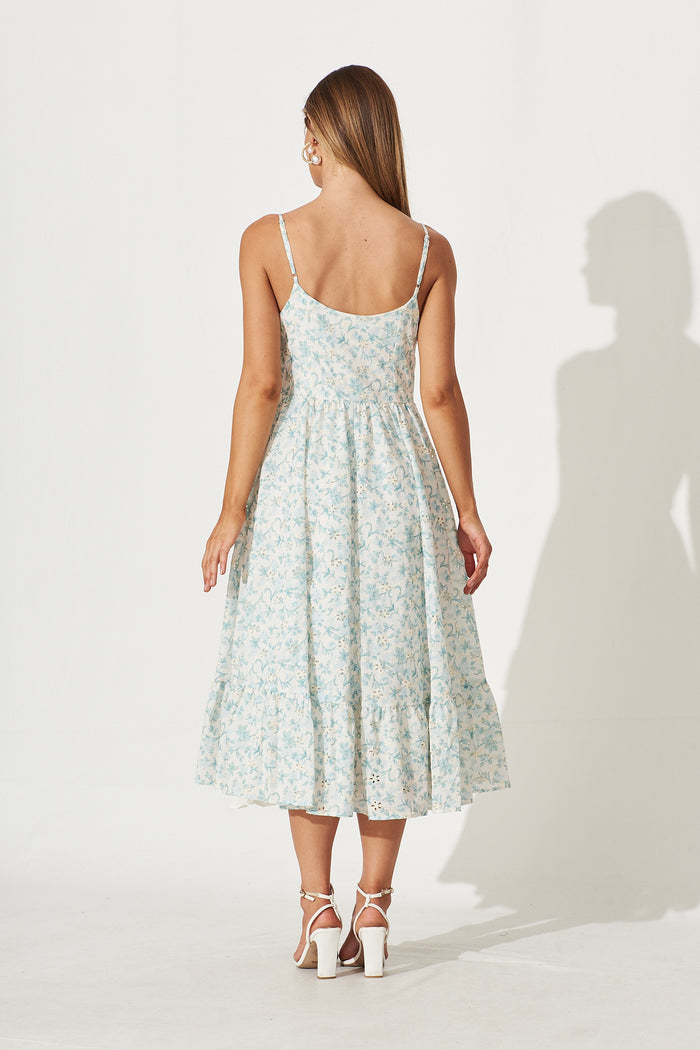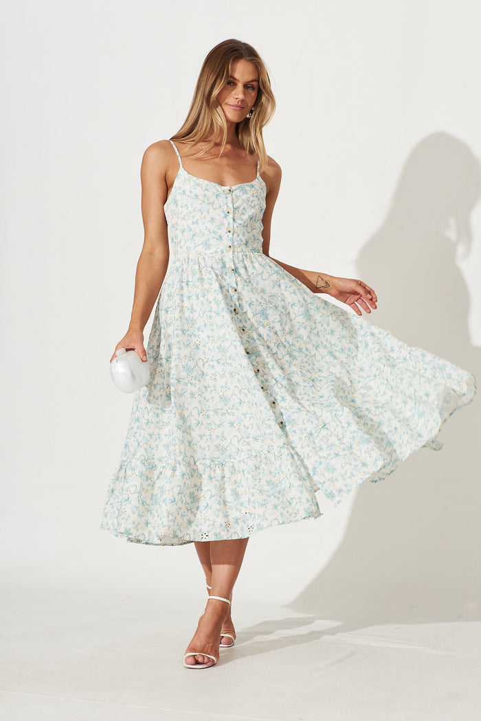 Sunshine Midi Sundress In Green Floral Cotton Broderie