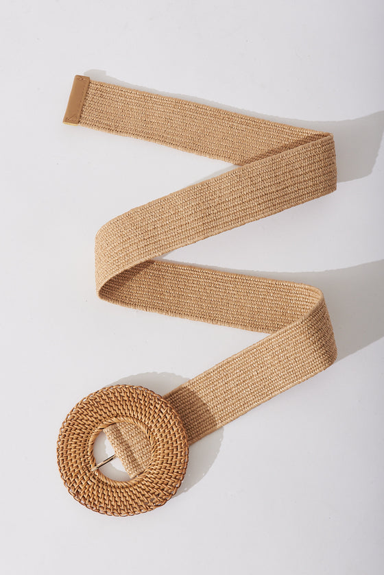 Susan Straw Belt In Tan Stretch