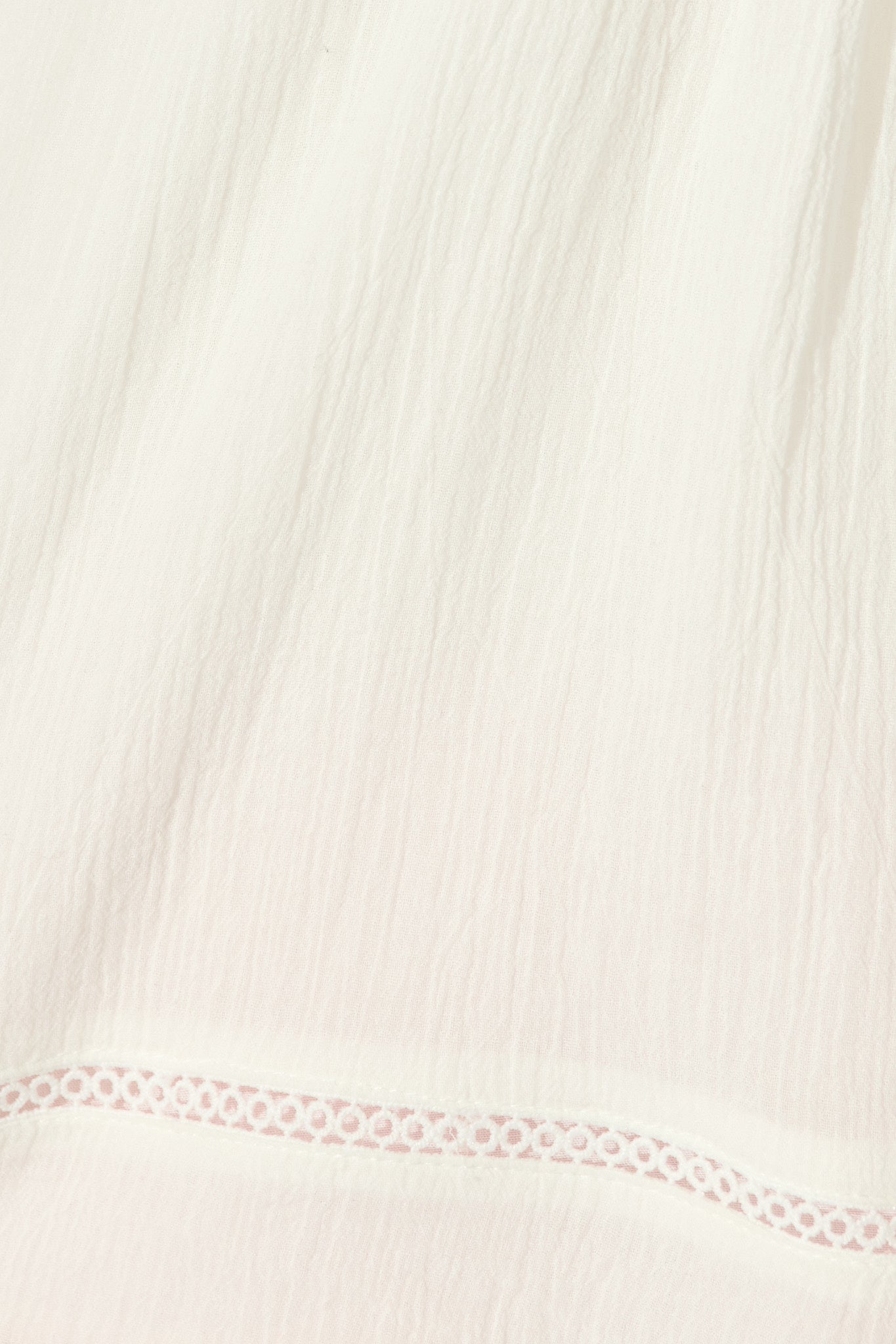 Made from crisp, breathable cotton with a soft rayon lining, this cami offers structure and comfort. Pintucked detailing adds subtle texture across the bodice, while the delicate embroidered lace trim and adjustable straps bring soft femininity. The elasticised back neckline ensures fit and ease, and the neck tie with gold-tipped toggles offers a luxe finishing touch.