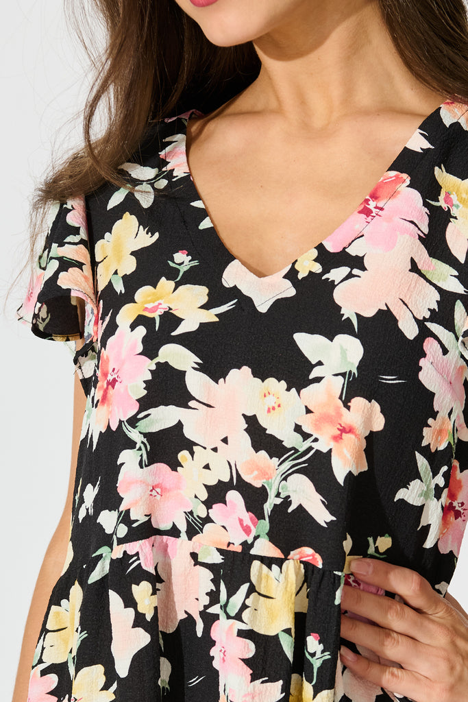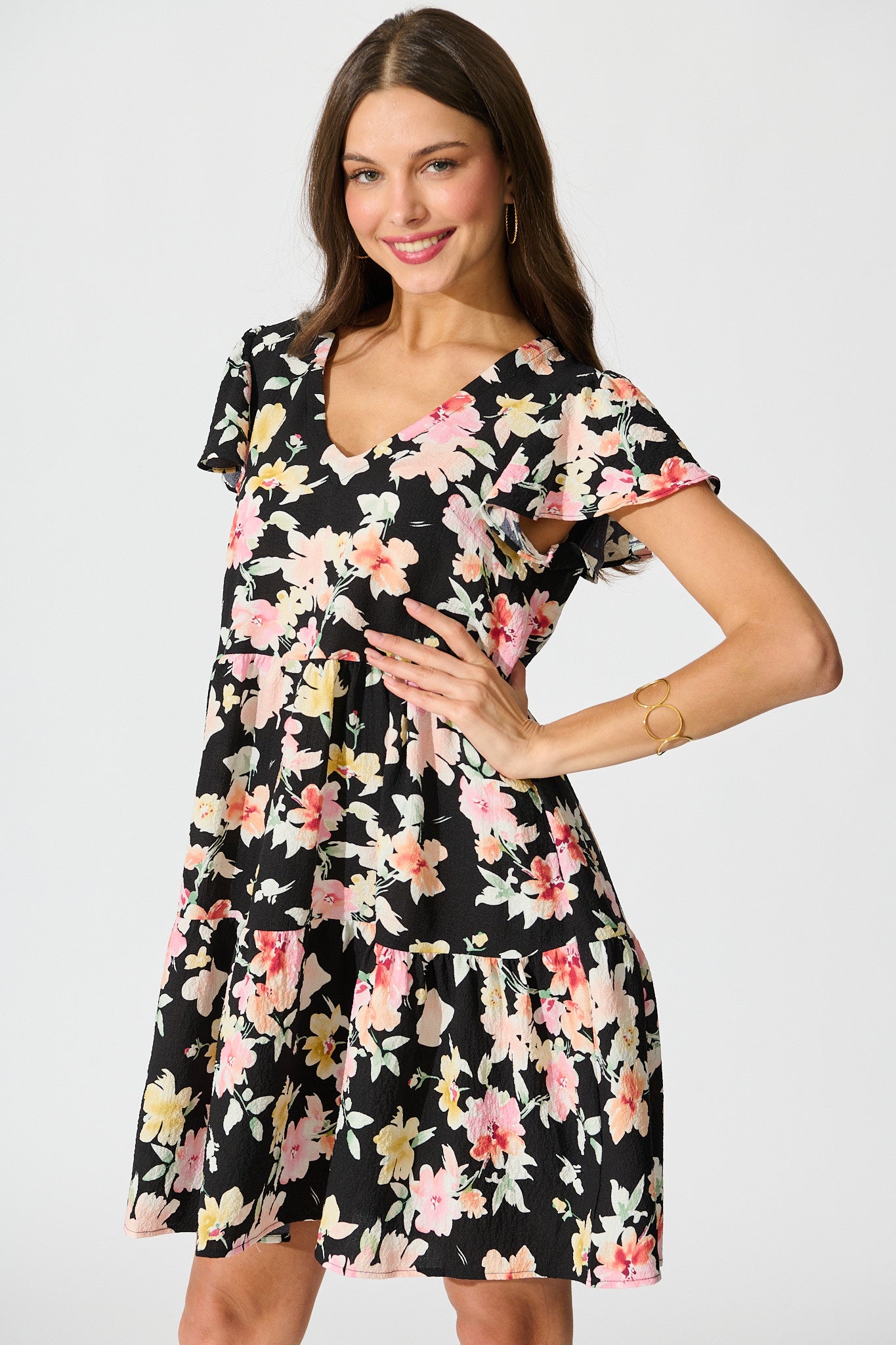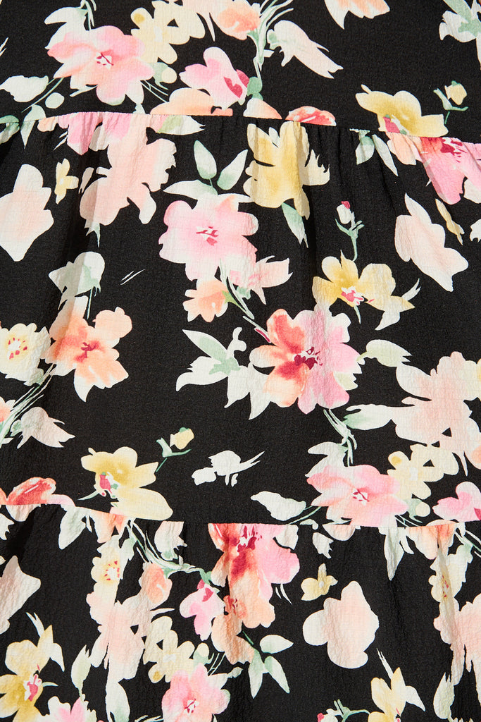 Made from a lightweight, breathable textured fabric, this pull-on style features a V neckline, short sleeves, tiered skirting and practical side pockets. The loose silhouette allows for plenty of movement without compromising on shape, while the bold floral print brings instant impact to your look.