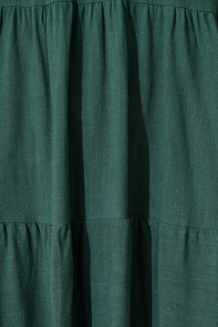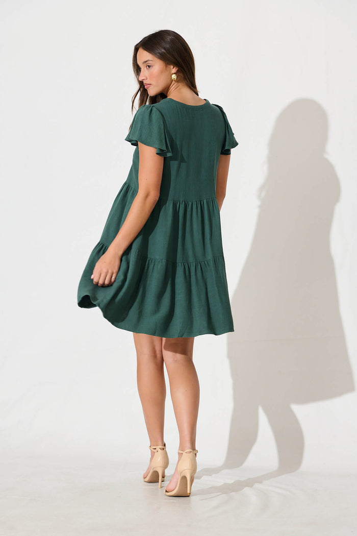 Tahiti Smock Dress In Green Linen Blend