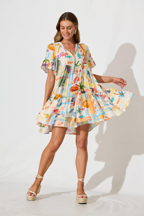 Tahnee Smock Dress In Cream With Multi Summer Print