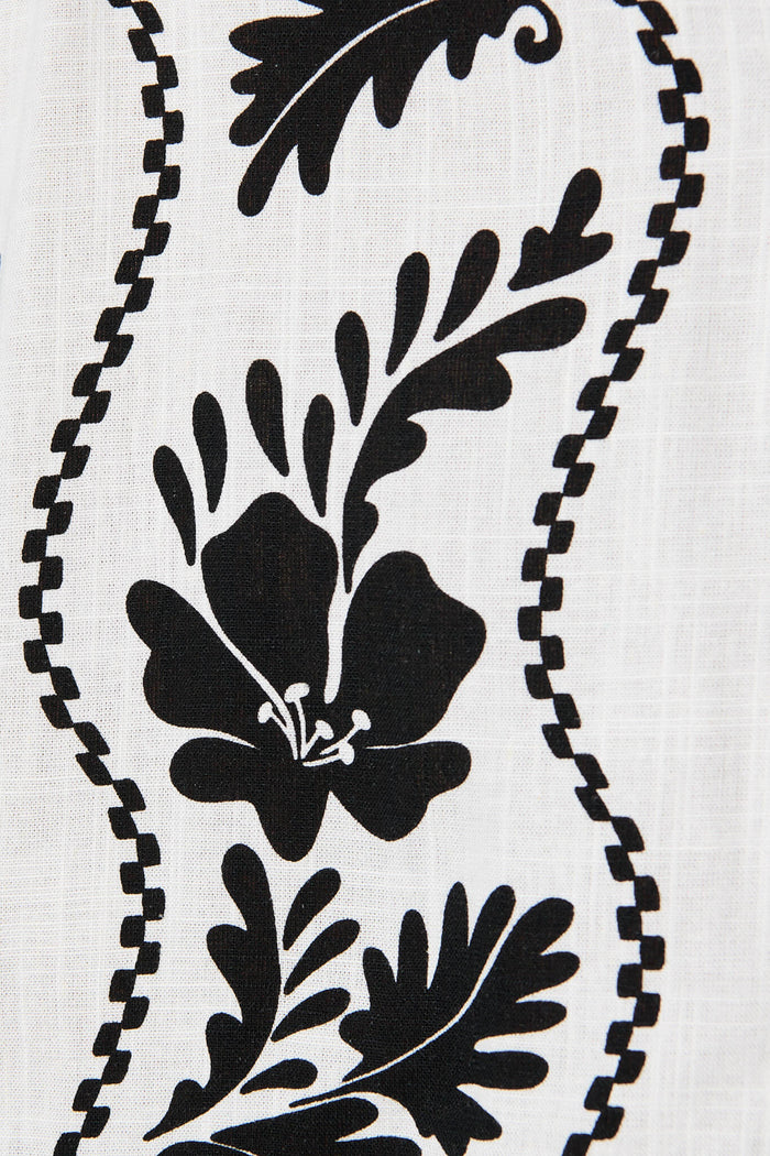 Taleah One Shoulder Dress in White Black Print Linen Blend
