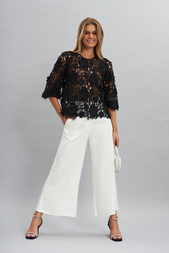 Elevate your wardrobe with our Tapestry Top. Perfect for any special occasions or events coming up. Featuring intricate lace detailing that adds a touch of elegance to the entire look. Style it with chic midi skirt, statement earrings, & strappy sandals.