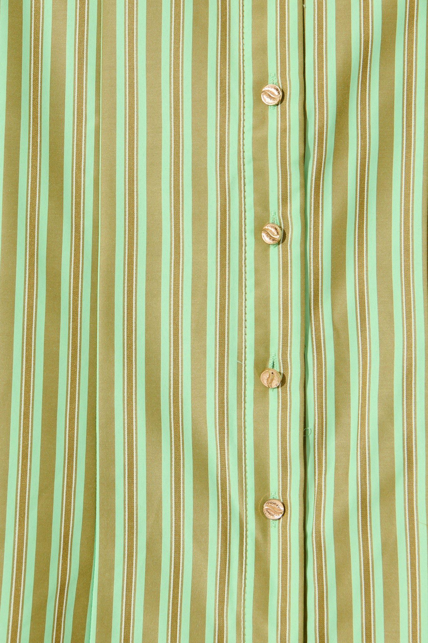 Tatiana Midi Shirt Dress in Green Stripe Cotton Blend