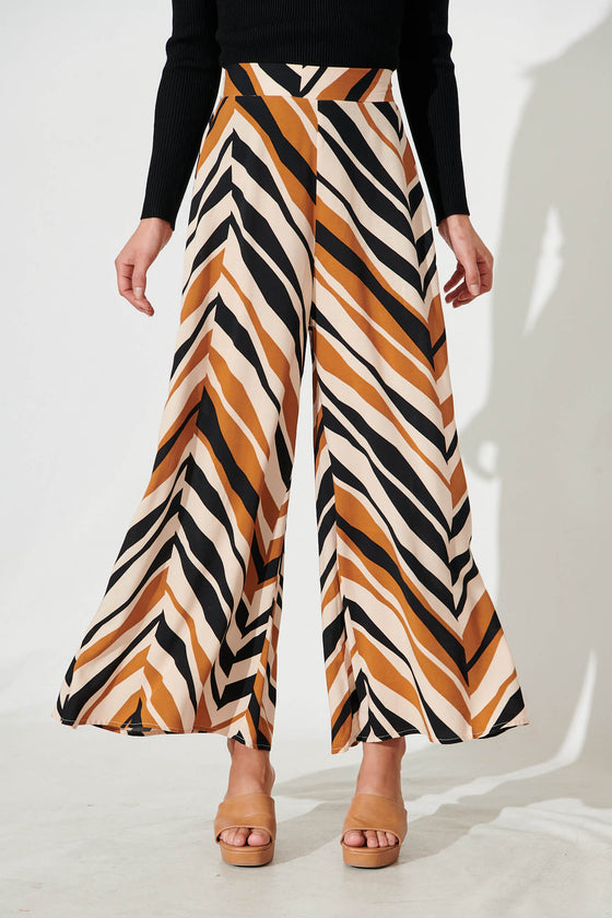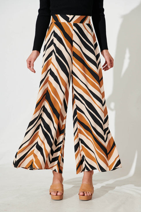 Theron Pant In Beige With Brown Zig Zag Print