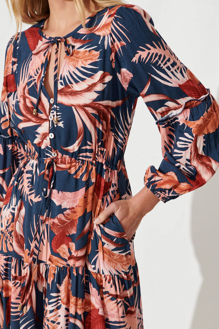 Ti Amo Midi Dress In Navy With Rust Floral Print