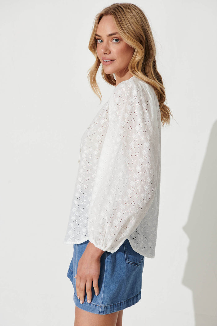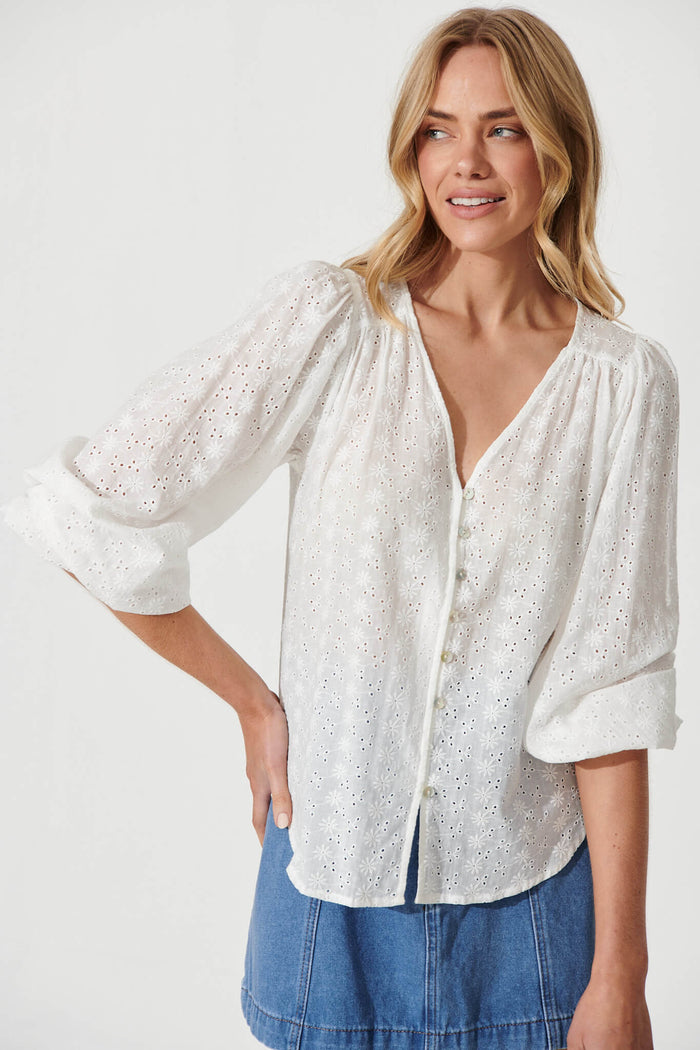 Tiffa Shirt In White Broderie Cotton