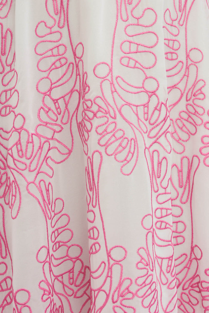Tiffany Maxi Dress In White With Raspberry Embroidery