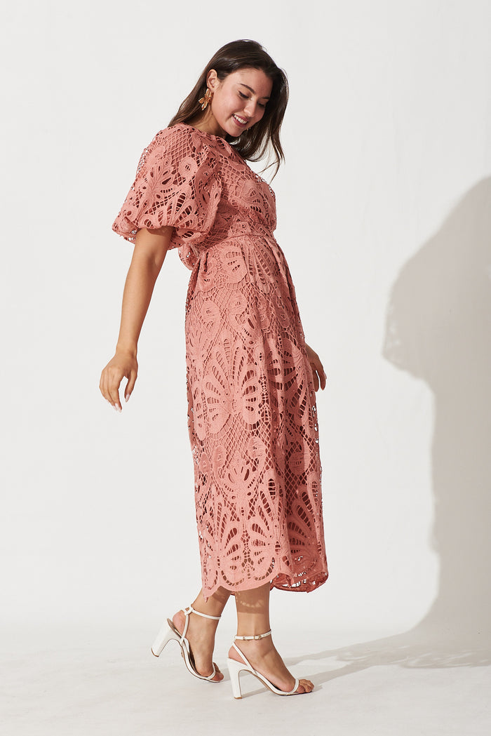 Tillie Lace Maxi Dress In Dusty Rose