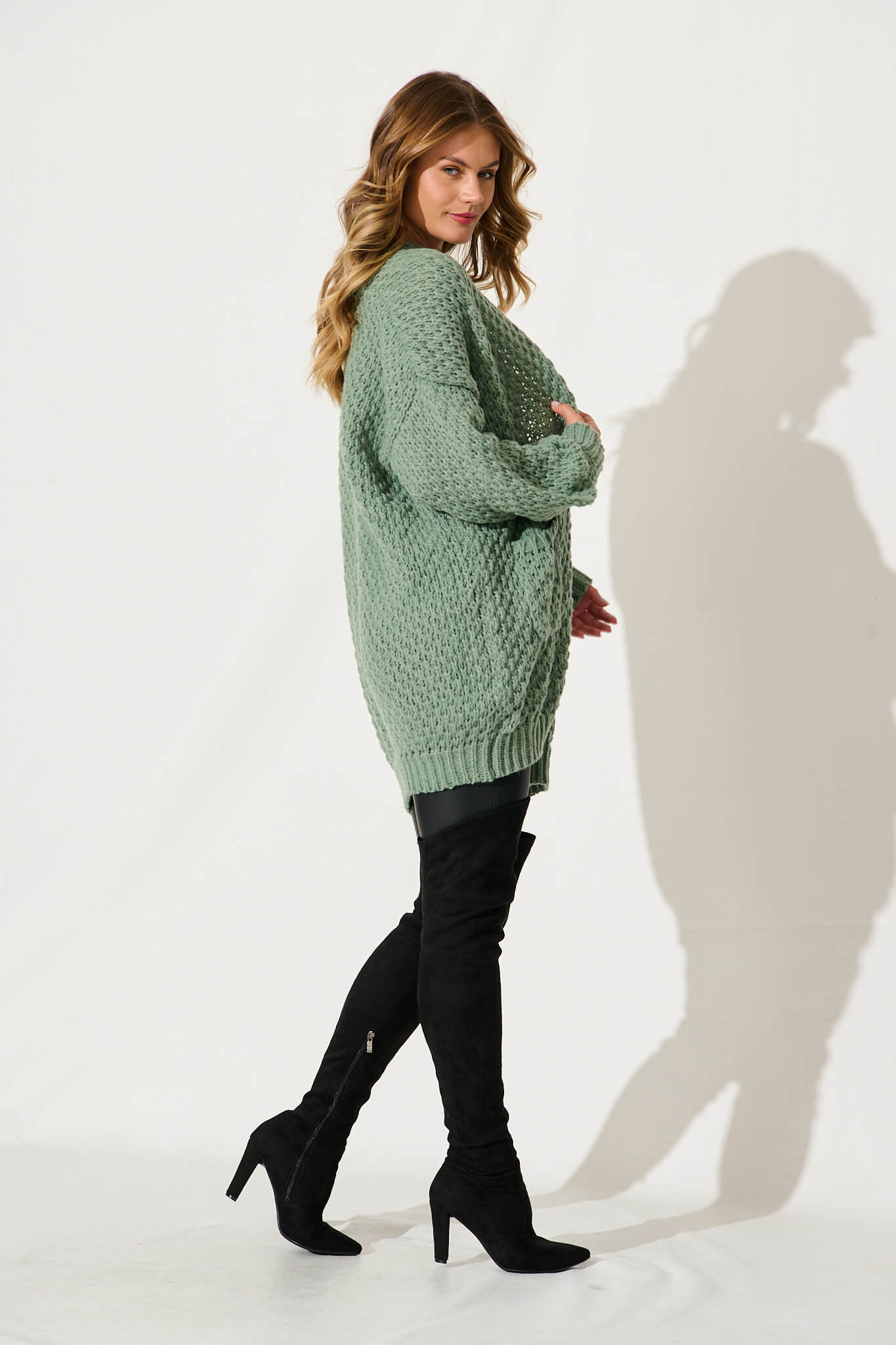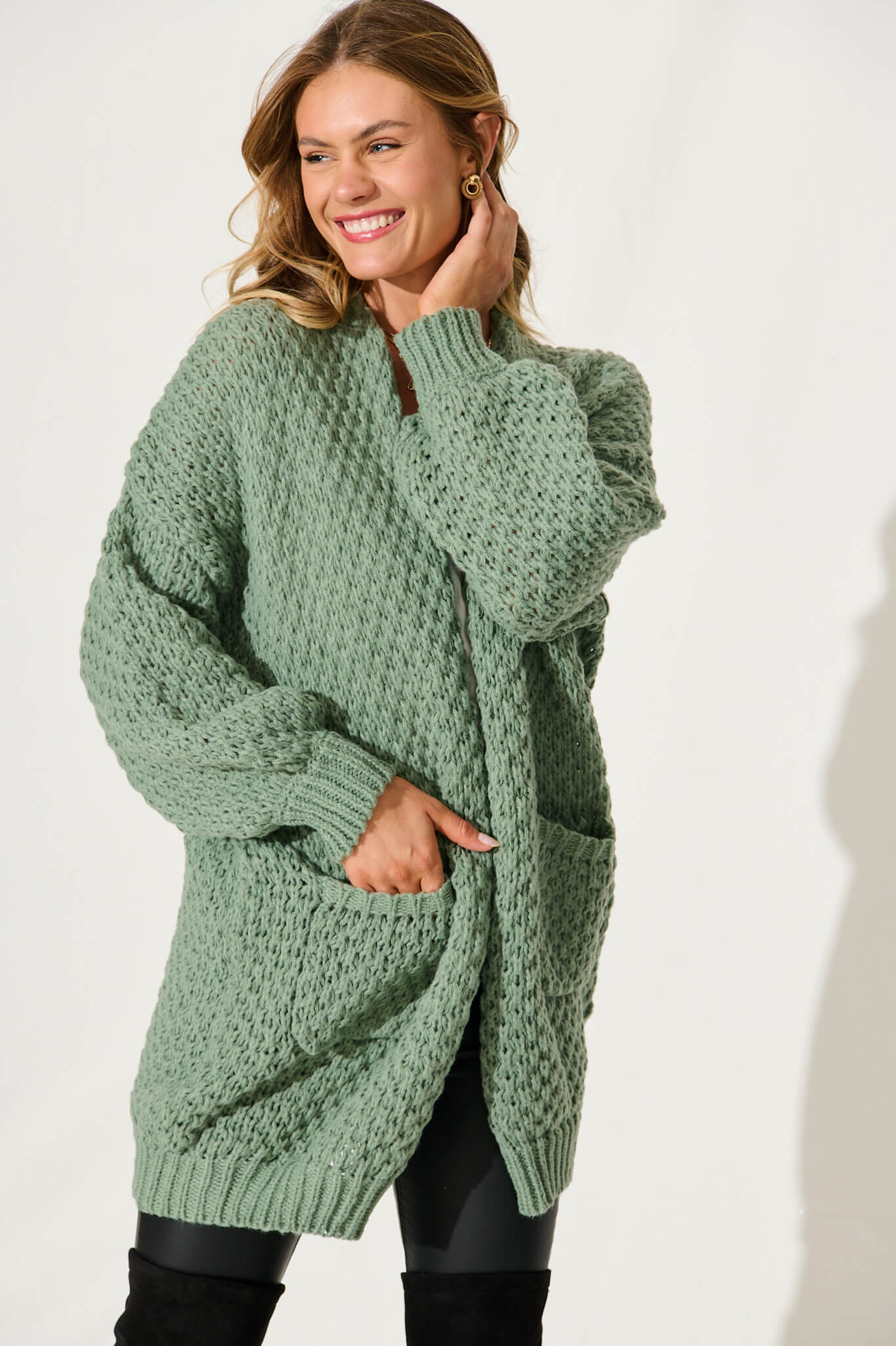 Tranquil Knit Cardigan In Pale Green Wool Blend