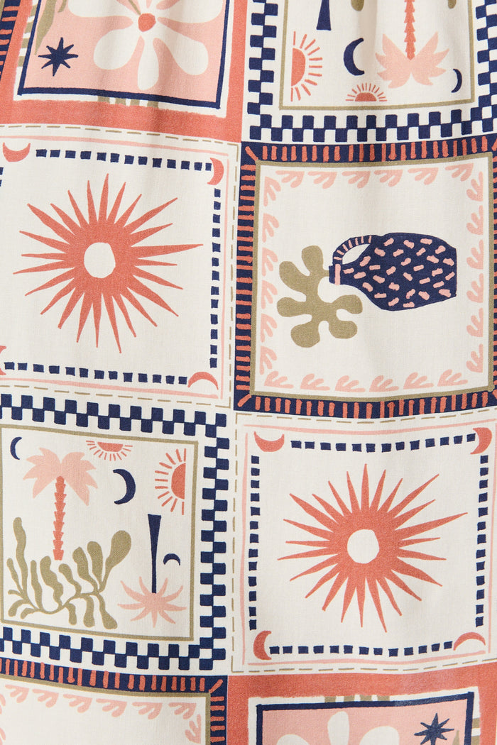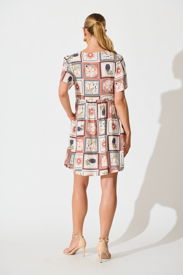 Transcend Dress in Cream With Rust Multi Patchwork Print