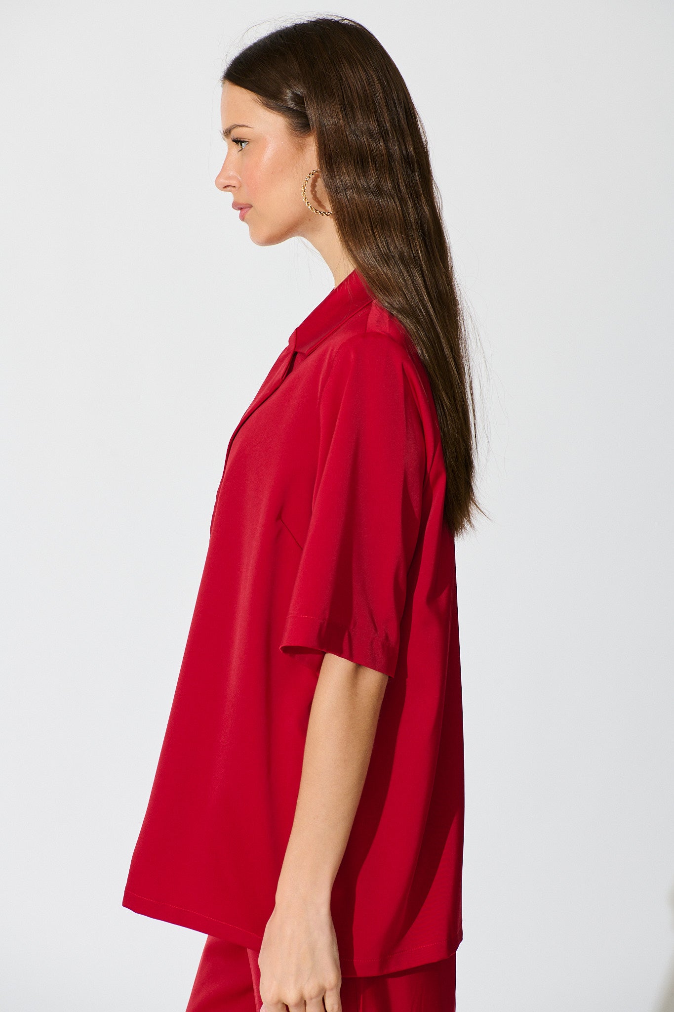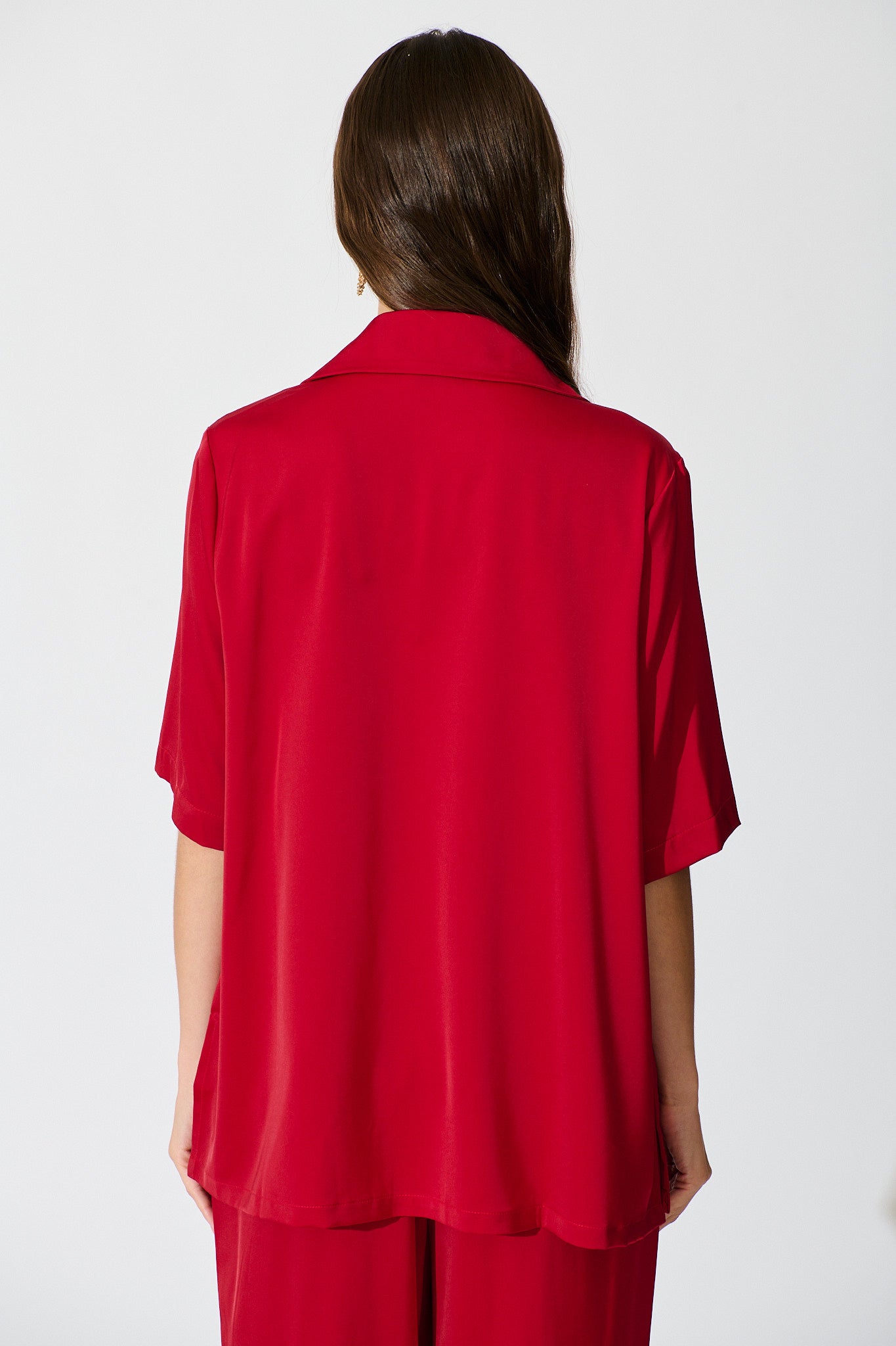 Bring a touch of polish to your wardrobe with the Trena Shirt in Red Satin. Designed for dressier days or elevated evenings, this rich red hue and glossy finish are made to stand out.