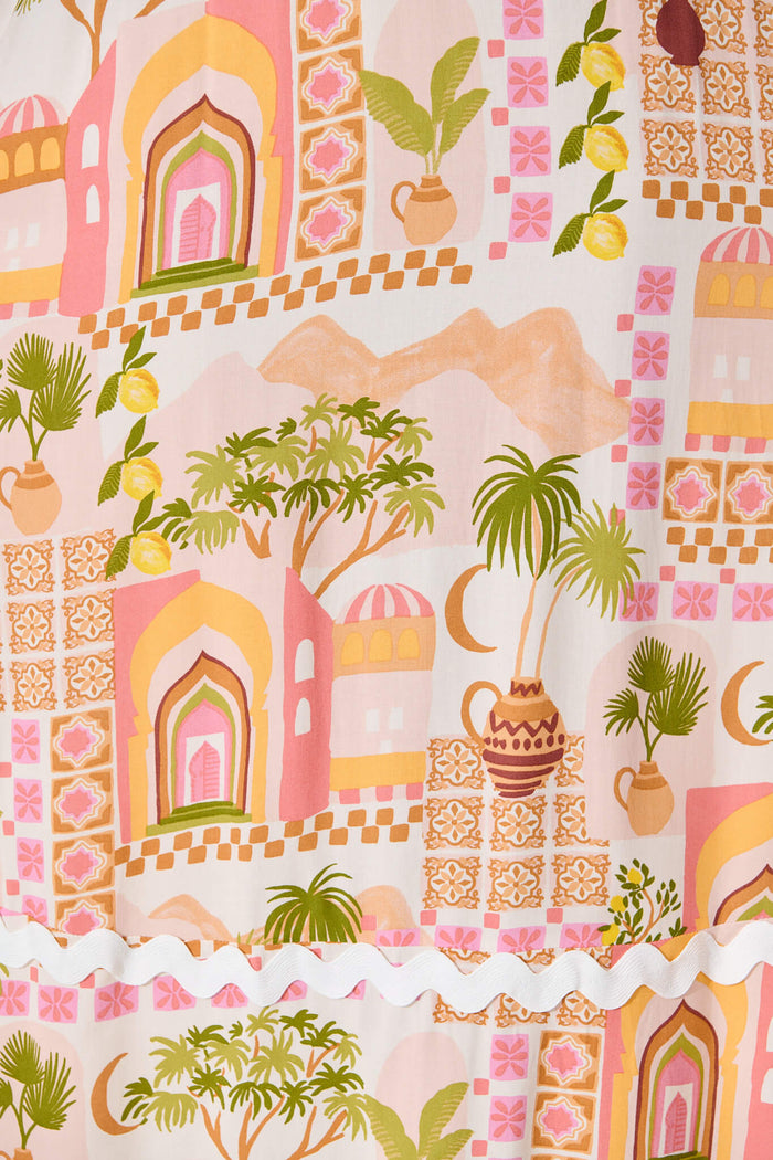 Treviso Maxi Sundress In Multi Beige Print With Ric Rac Trim