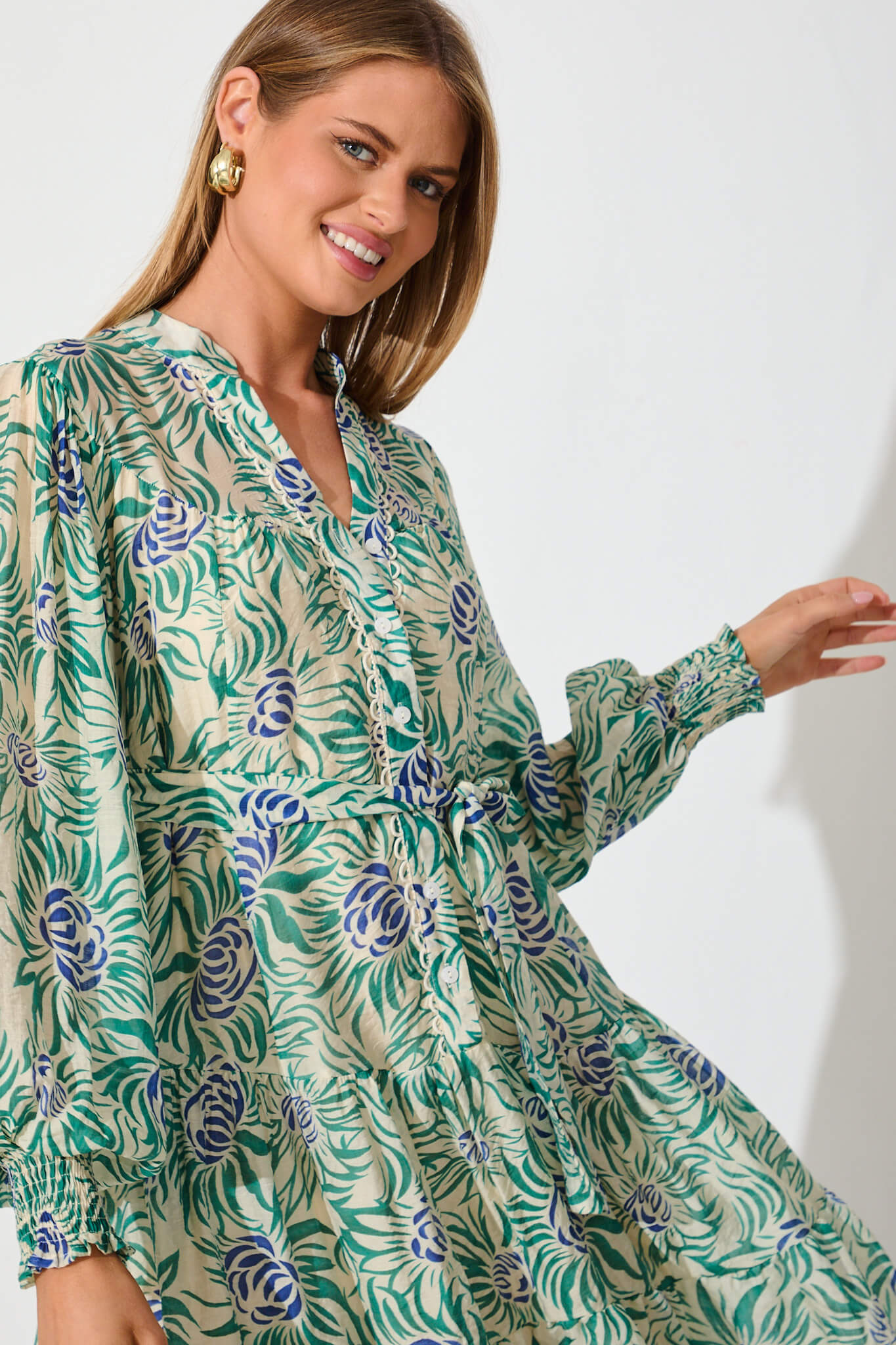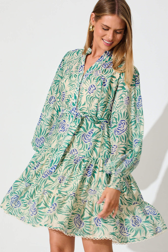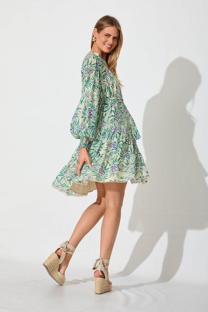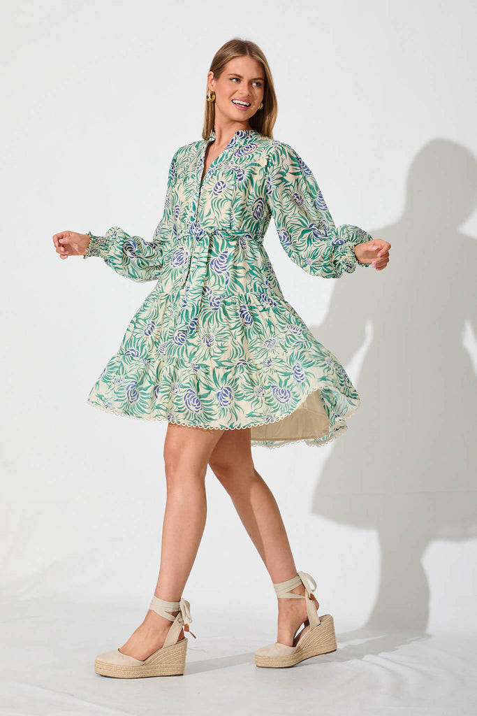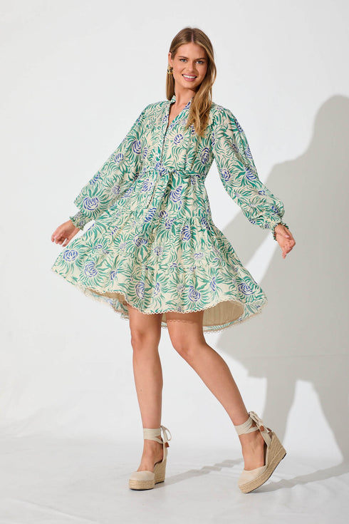 Tristan Dress In Cream With Green And Blue Floral