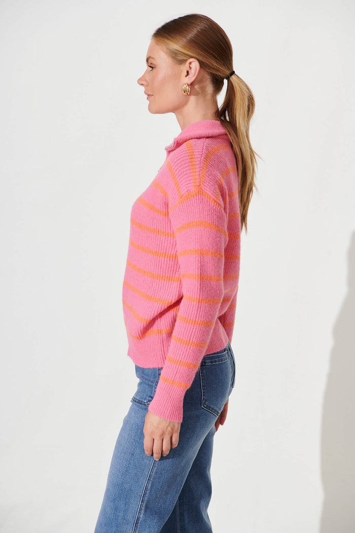 Uma Zip Athleisure Knit In Pink Stripe Wool Blend