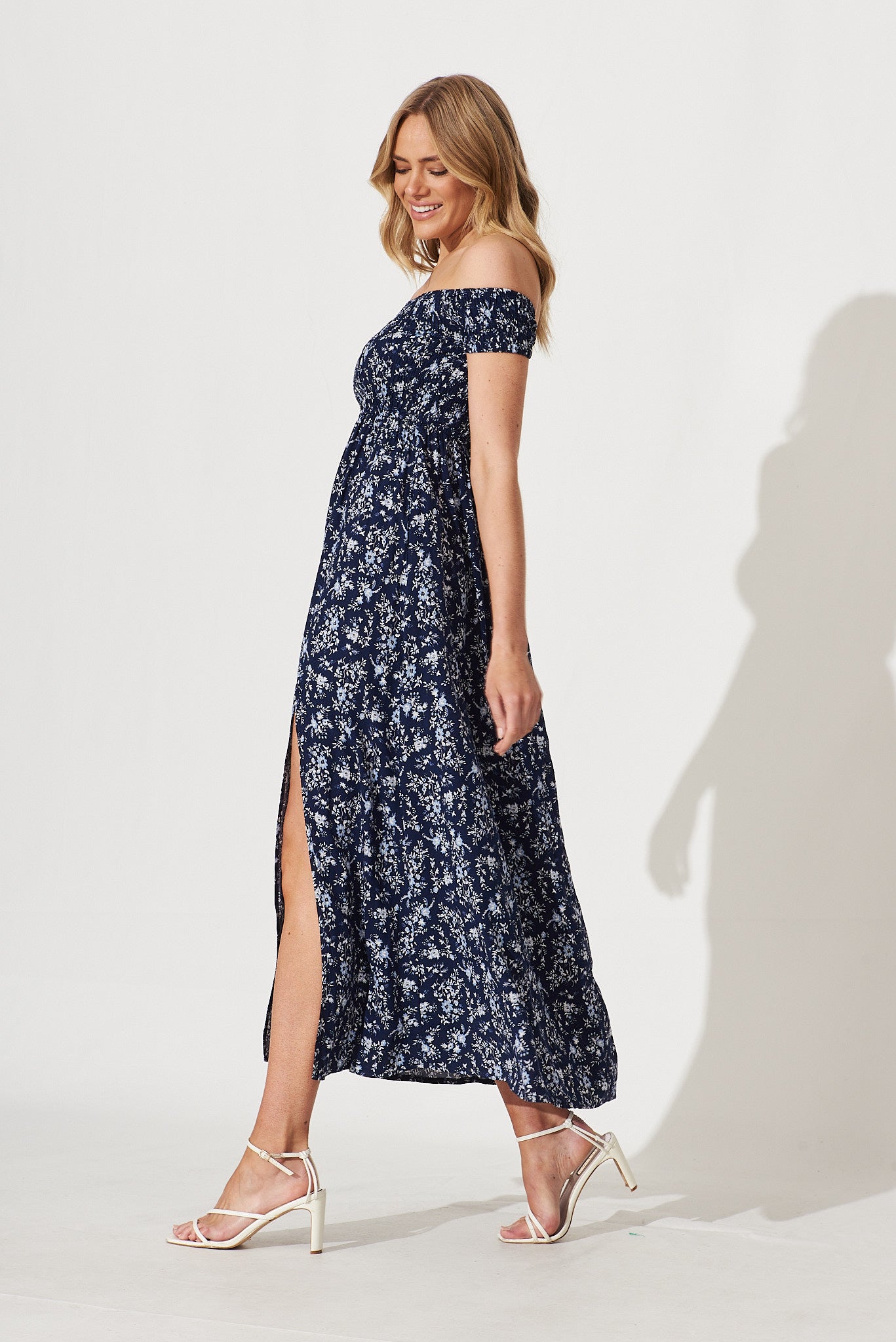 Under The Sun Maxi Dress In Navy With White Floral