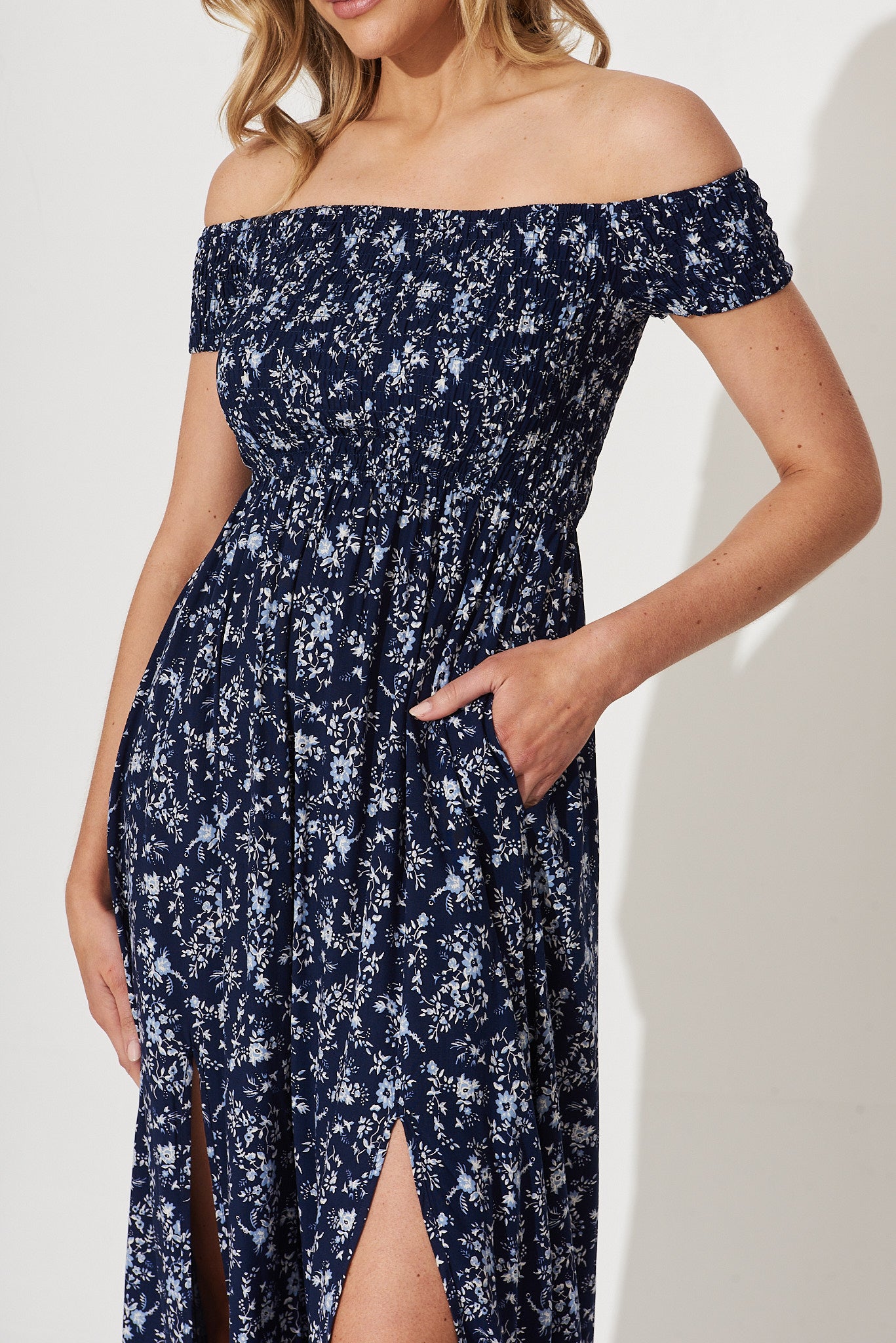 - Shirred bodice
