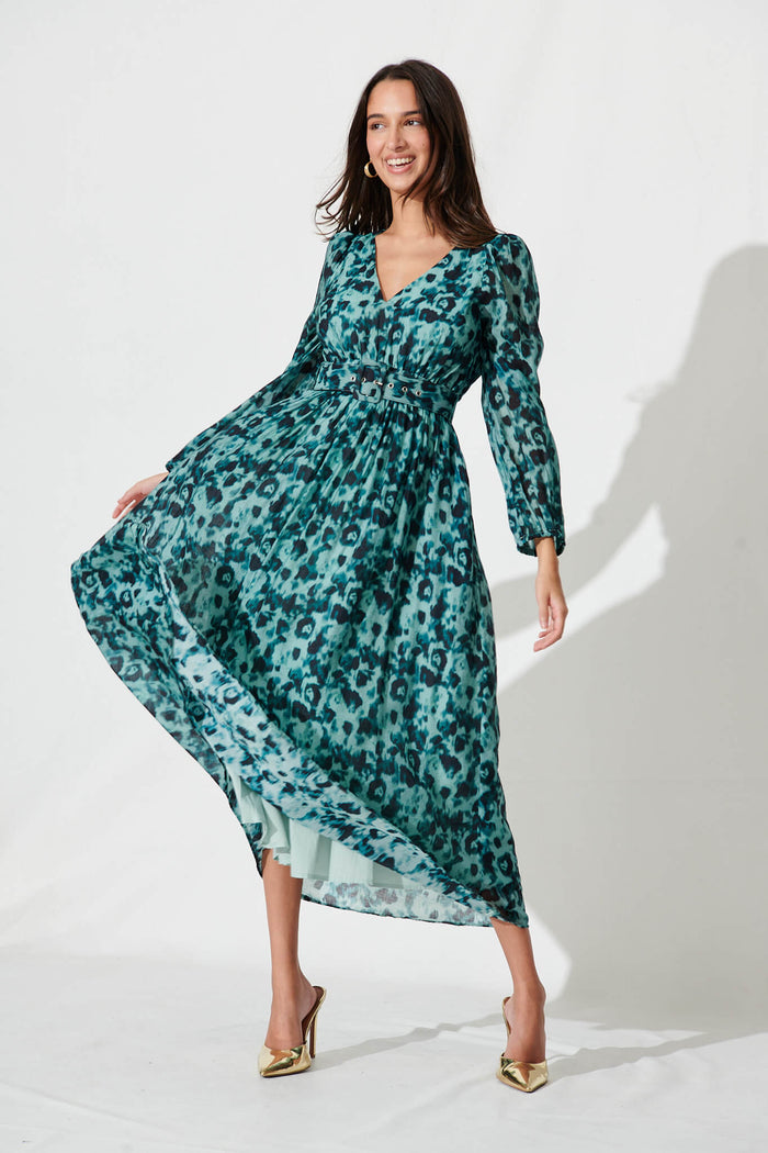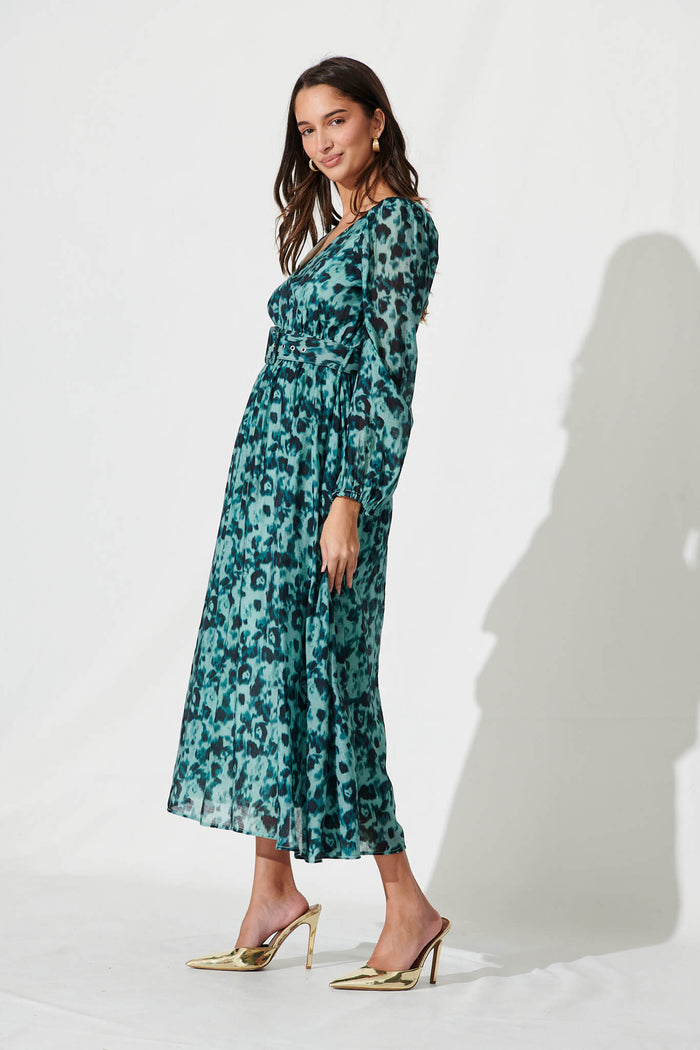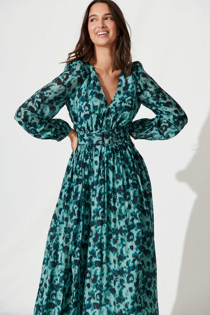 Vichy Midi Dress In Teal Watercolour Cotton Blend